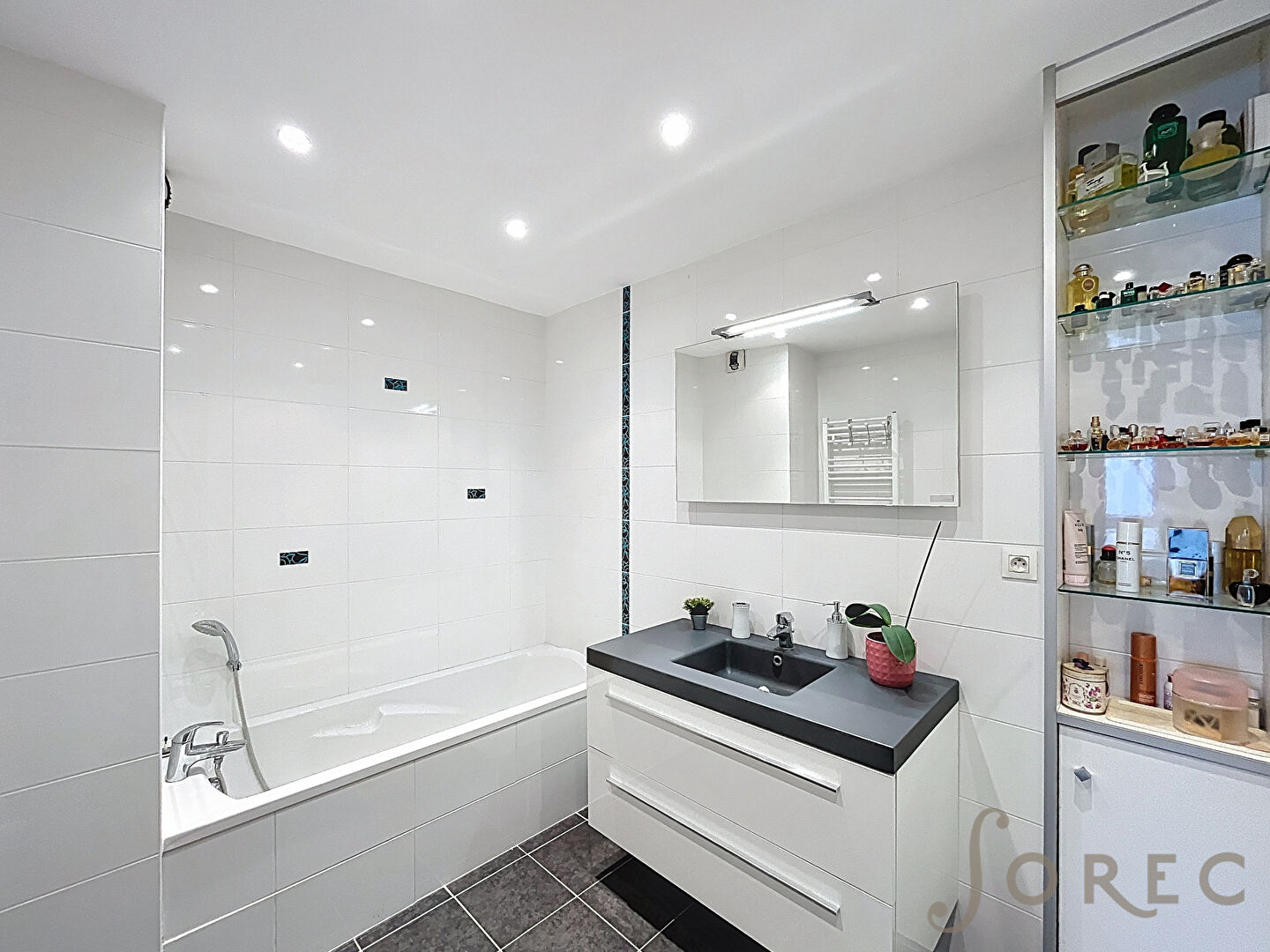 D'une superficie d'environ 93m², l'appartement s'ouvre sur une entrée accueillante menant à une vaste pièce de vie lumineuse, idéalement agencée. La cuisine ouverte et fonctionnelle dispose de son espace cellier/cagibi. Cet espace de vie se prolonge vers un grand balcon.