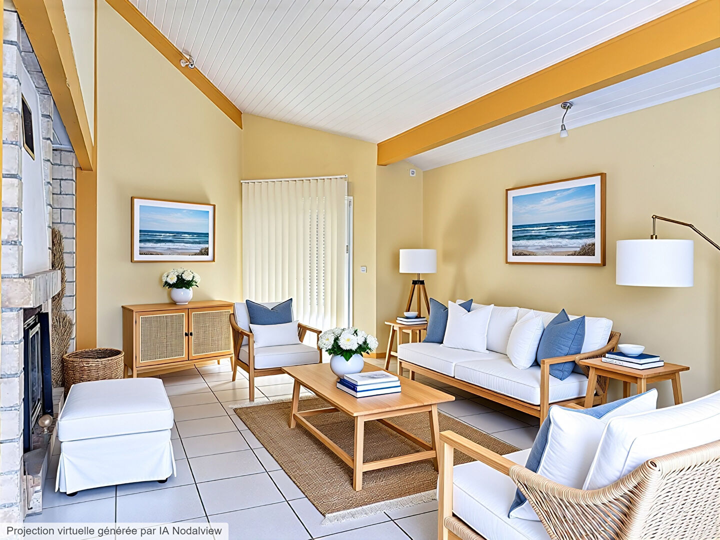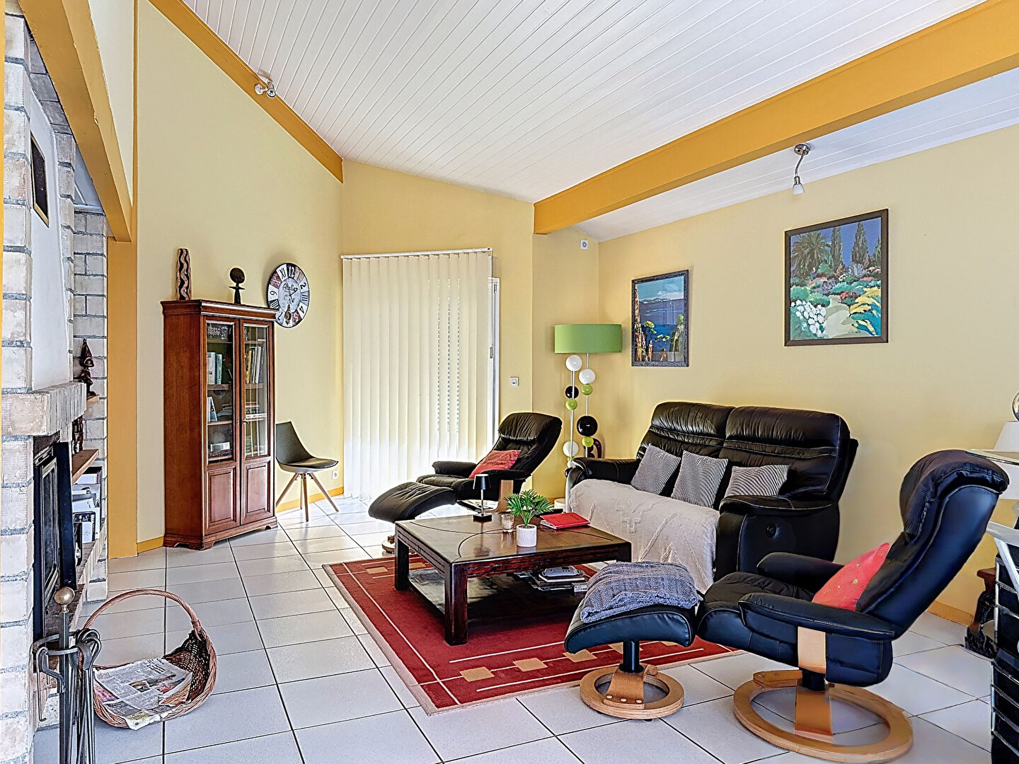 La vaste pièce de vie réunit une cuisine ouverte, un espace salle à manger convivial et un salon chaleureux agrémenté d'un insert bois, parfait pour les soirées d'hiver.