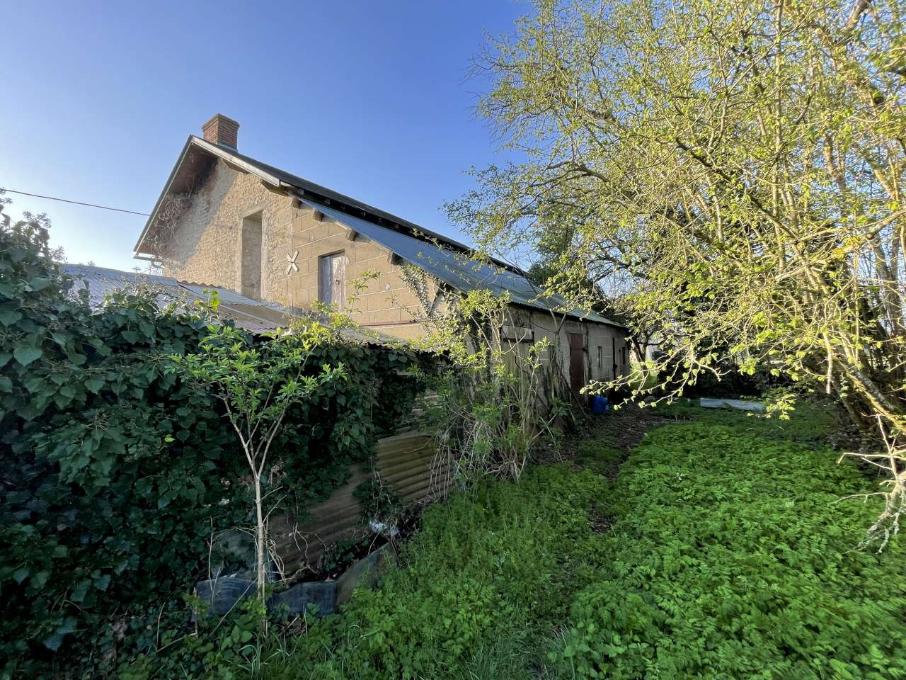 Maison en pierres de 80 m² habitables comprenant deux pièces avec un grenier, 45 et 35 m² en RDC, le tout sur 6256m² de terrain attenant. Couverture refaite à neuve, assainissement à prévoir, ainsi que tous les travaux intérieurs.