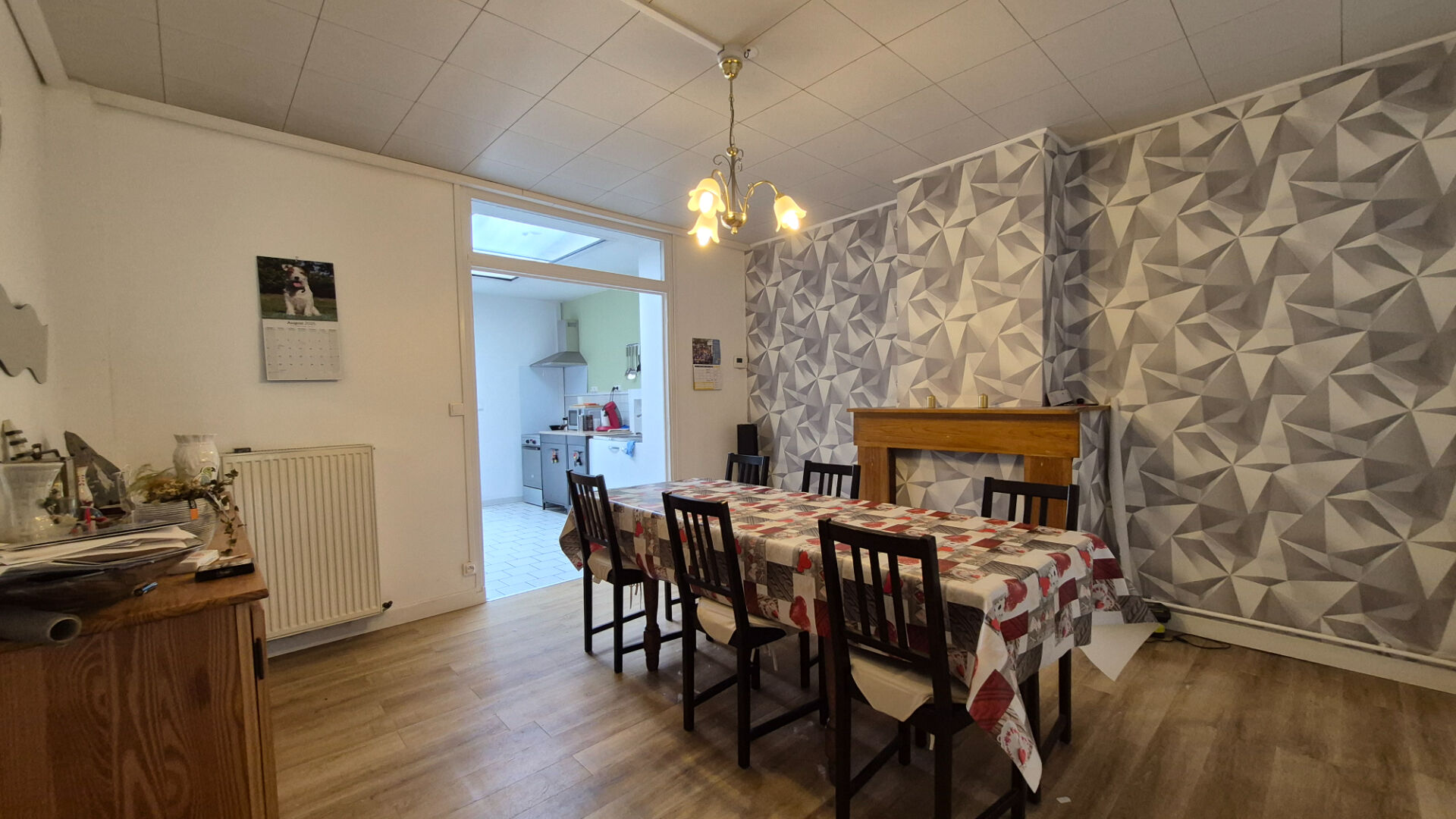 Cette maison à Hénin-Beaumont (Dourges) mesure 94 mètres carrés. Elle dispose de deux chambres, d'un séjour de 16,50 mètres carrés, d'un salon, d'une cuisine, d'une salle de bain, de toilettes séparées, d'un palier, d'un garage, et d'un jardin d'environ 180 mètres carrés. La maison est chauffée au gaz avec une chaudière neuve, et les fenêtres sont en PVC double vitrage. La toiture a moins de 15 ans, donc tout est en bon état !