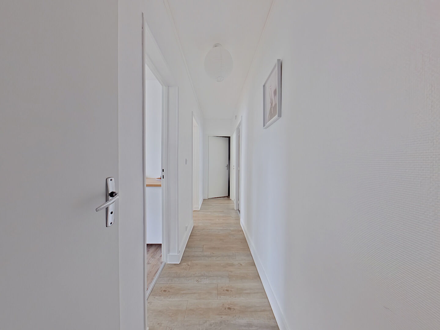 Entrée avec placards, pièce de vie avec balcon exposé Ouest, cuisine indépendante aménagée, 2 chambres exposées Est, salle de bains et WC.