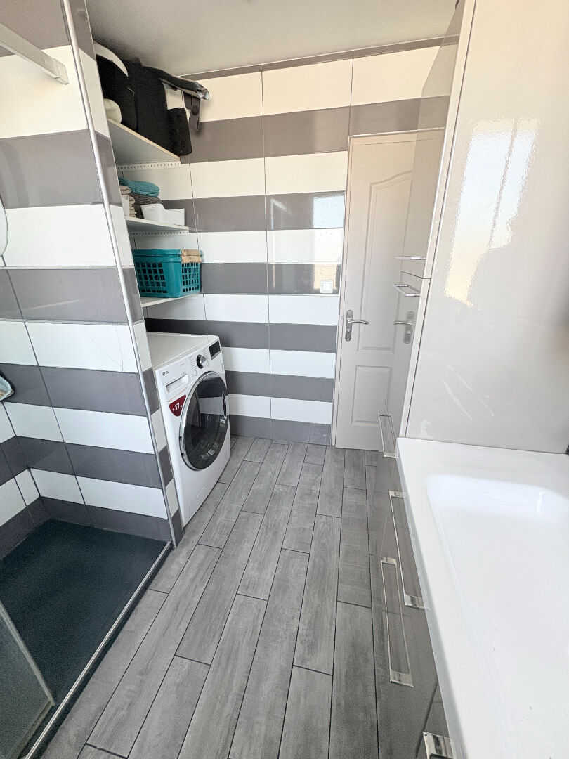Nombreux rangements, cagibi privatif sur le palier, chauffage et climatisation par pompe à chaleur Air/Air.