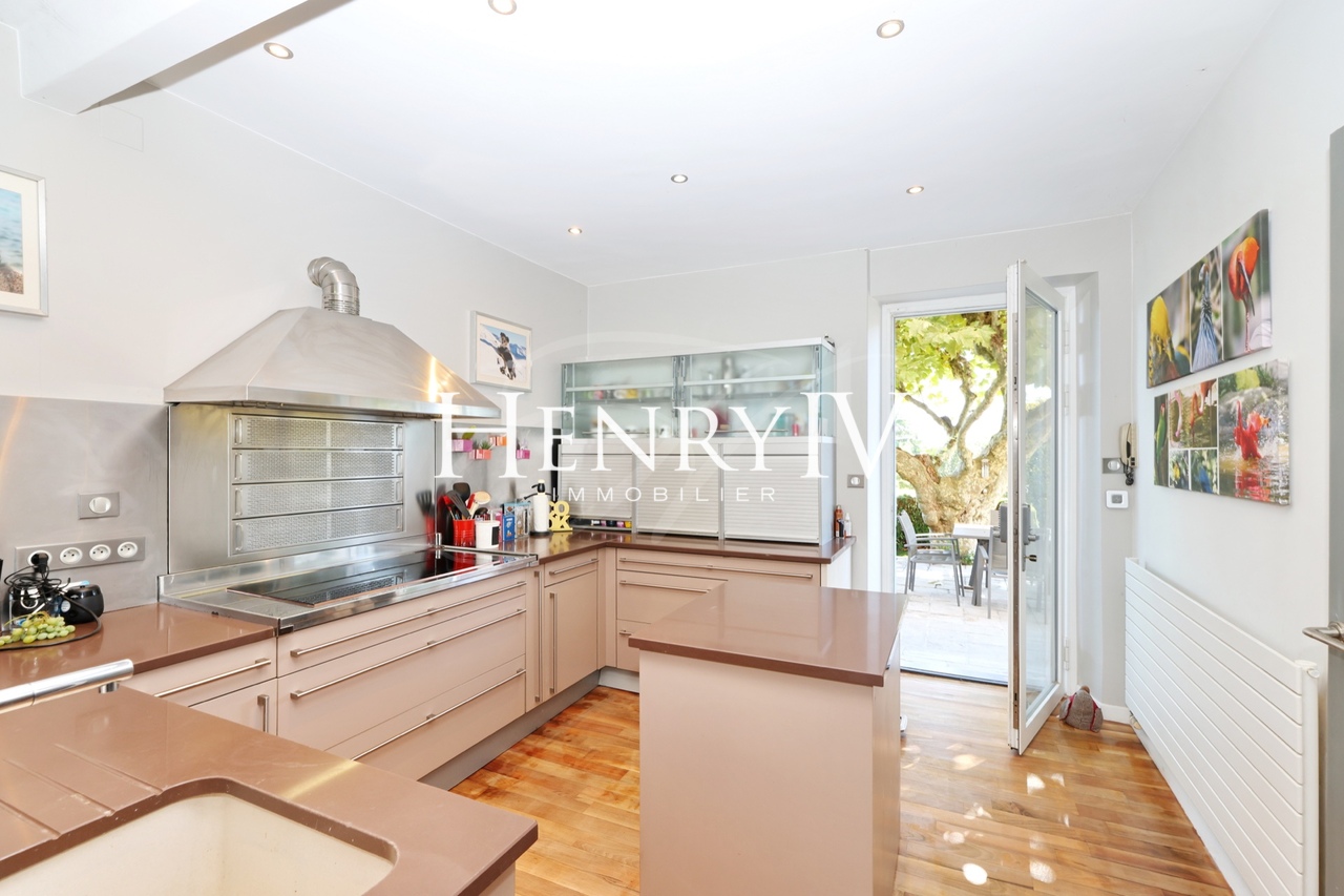 CHARME ET VOLUME pour cette bâtisse rénovée avec beaucoup de goût dans un environnement calme et verdoyant sans aucun vis-à-vis. Composée d'une belle cuisine de 28 m2 ouverte sur la terrasse donnant sur Belledonne, d'un cellier, d'une magnifique pièce de vie de 80 m2 agrémenté d'un poêle et d'une mezzanine, d'une grande et chaleureuse salle à manger, de 6 chambres au total: à l'étage on trouve 3 chambres dont une suite parentale avec sa propre salle de bains ainsi qu'une salle d'eau ( dans une des 2 chambres), tandis que dans une autre aile de la maison se situent 3 autres chambres avec une salle d'eau commune et un wc. Le superbe jardin arboré de 1688 m2 est agrémenté d'une piscine et d'une belle plage exposée SUD-EST ainsi que d'un terrain de boules. De nombreuses annexes complètent ce bien: 2 garages, un local piscine, un garage de stockage, une salle de jeux, et une grande cave d'environ 100 m2 composée de rangement et d'une buanderie. Négo Maud Csordas.