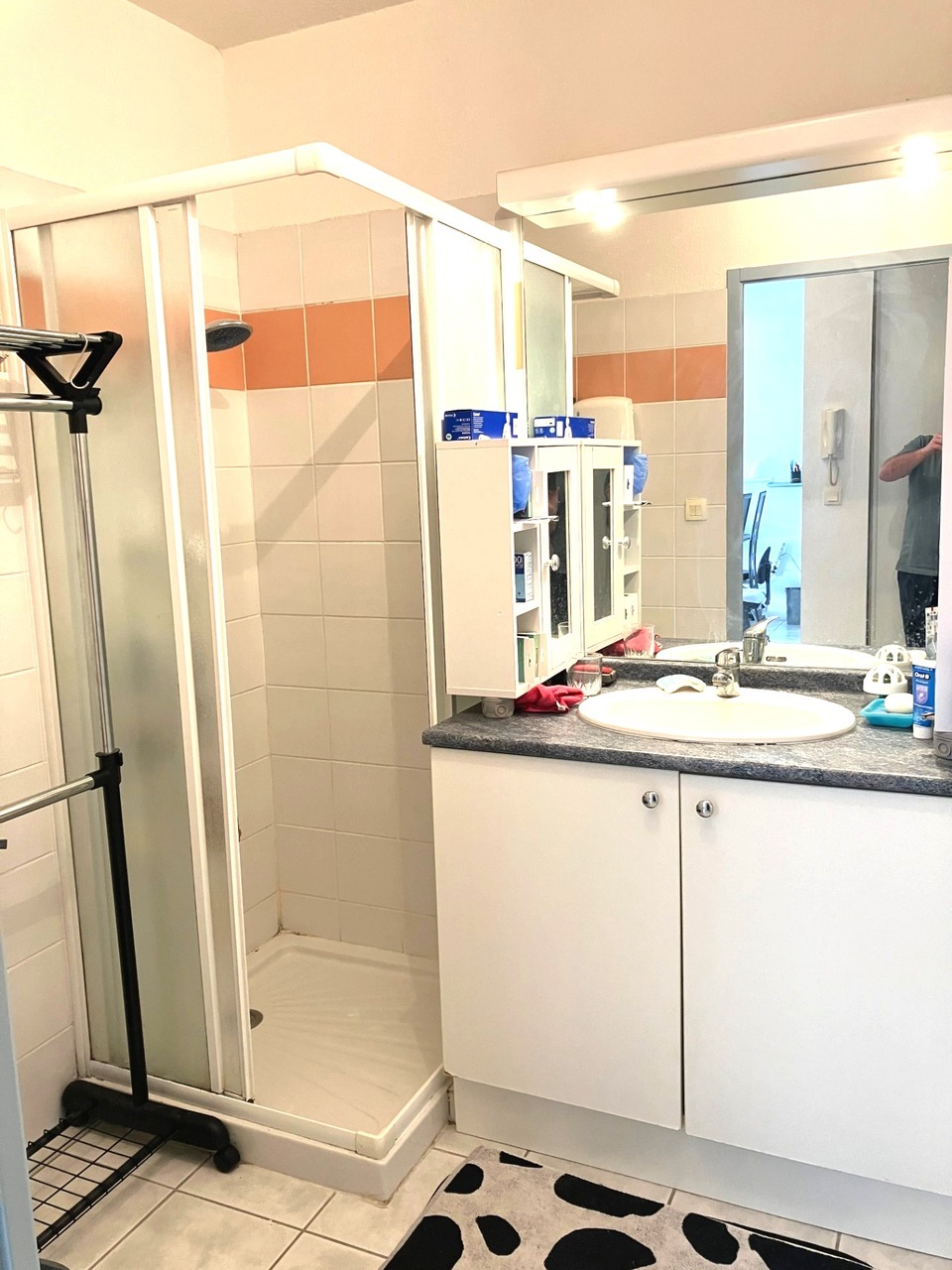 Appartement de type 2 de 45m² dans une résidence sécurisée, avec loggia et place de parking. Séjour avec double baie vitrée, offrant une vue agréable, possédant un coin cuisine aménagée, salle d'eau et WC séparé.