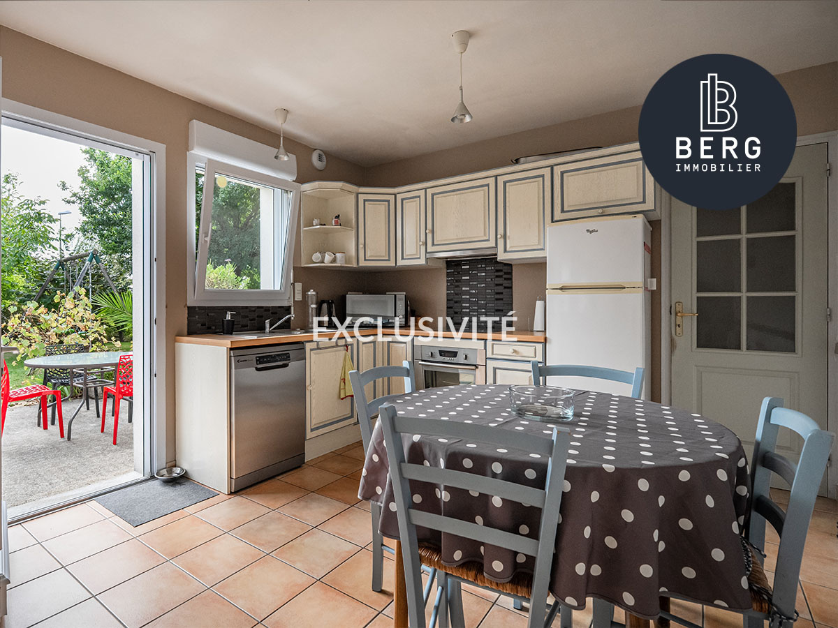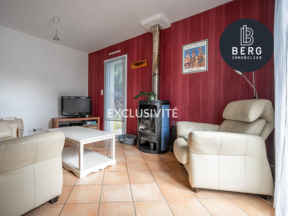 Pièce de vie avec cuisine ouverte, le tout plein sud avec accès sur terrasse et jardin sans vis à vis.