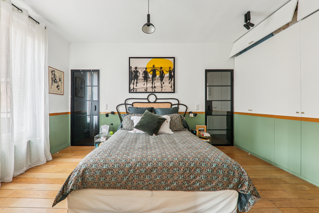 L'ensemble offre de très beaux volumes, une vue dégagée sur une vaste cour arborée et une exposition plein sud assurant une luminosité constante. Parquet en chêne massif, double vitrage et de nombreux rangements intégrés. Aucun travaux à prévoir.