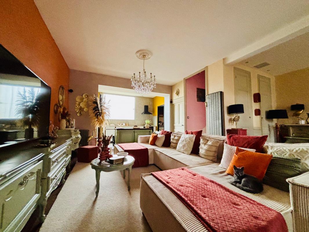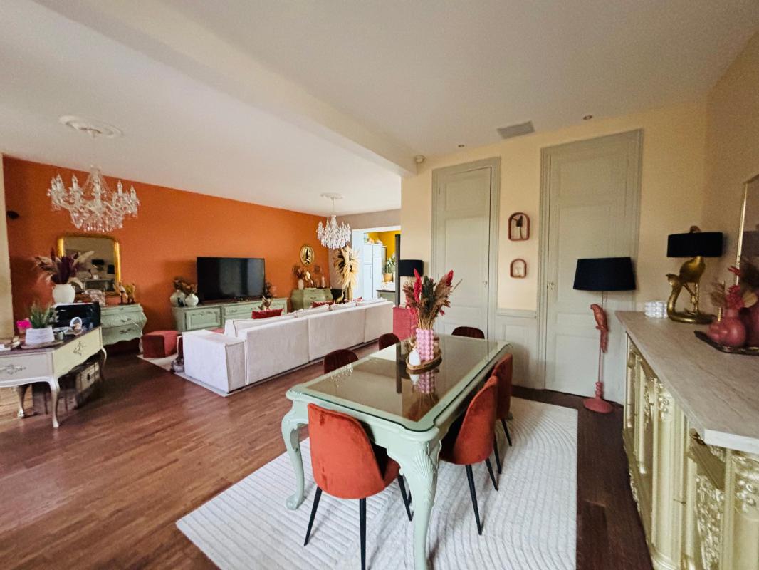 Cette bien entièrement rénové de 175 m² est composé au rez-de-chaussée d'une grande pièce de vie de 60 m² avec cuisine équipée ouverte sur séjour, salon, une cheminée à insert, et un w.c.