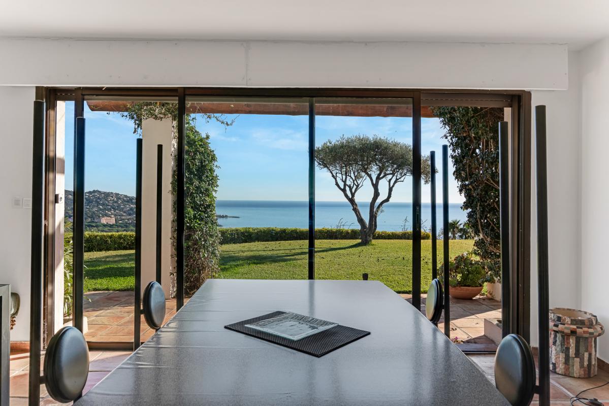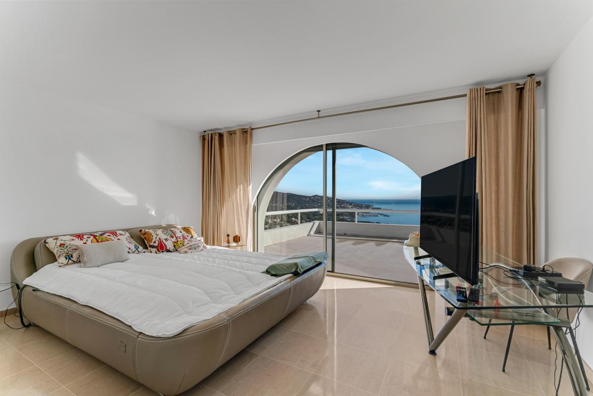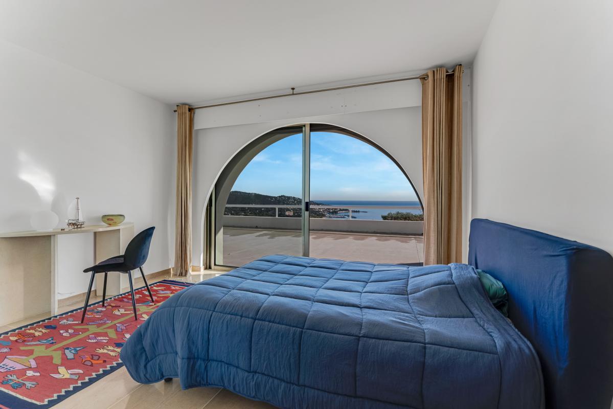 La piscine de plain-pied invite à la détente face à la Méditerranée, tandis qu'un patio d'accueil raffiné instaure dès l'entrée une atmosphère apaisante et sophistiquée. Les extérieurs, soigneusement paysagés, s'étendent sur un terrain de 4 040 m², ponctué de terrasses ensoleillées et d'espaces de repos. La propriété dispose également de sept places de stationnement, dont trois couvertes, garantissant un confort optimal.