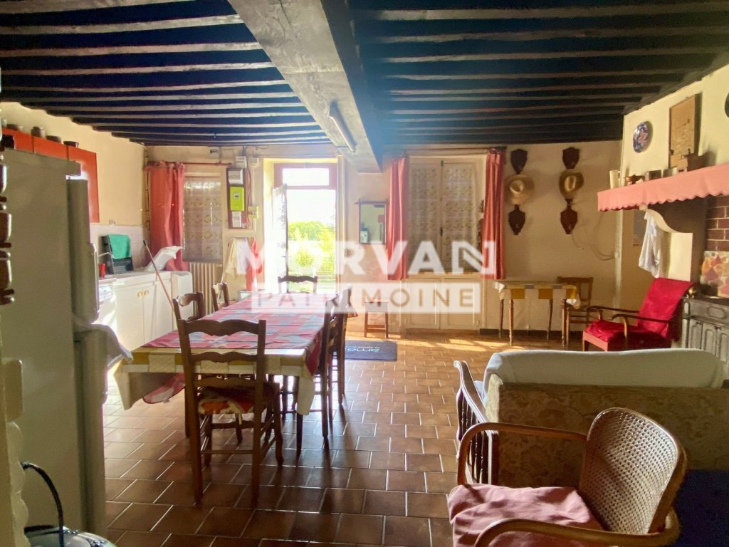Le bâti présente une belle ossature traditionnelle de type fermette, toiture en ardoise naturelle et façade en bon état. Les huisseries en bois et le simple vitrage confèrent du caractère, tout en nécessitant un remplacement pour améliorer l'isolation thermique - travaux signalés en rafraîchissement (notamment changement des huisseries). Chauffage central au fuel avec production d'eau chaude complété par un poêle à bois ; Installation électrique de plus de 15 ans et assainissement par fosse septique non conforme (filière complète à prévoir).