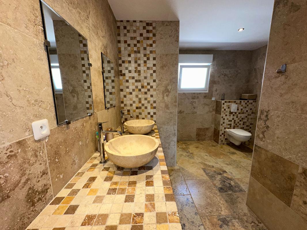 Très lumineux et bien distribué, le bien dispose d'une entrée sur une chaleureuse et spacieuse pièce de vie de 53 m2 dont cuisine dînatoire aménagée et équipée, avec accès jardin, AUCUN VIS-à-VIS, deux belles chambres de 12 et 15 m2, l'une avec placards, la seconde avec dressing, une salle d'eau avec douche à l'italienne, double vasque et WC, un débarras. Un abris voiture pour 2 véhicules et un abris jardin complètent ce BIEN RARE sur le secteur, édifiés sur 1053 m2 de terrain clos en grande partie gravillonnée. Maison située en 2ème, sans nuisance. Prestations et matériaux de qualité : sols et salle d'eau en travertin, huisseries PVC et alu, double vitrage et volets roulants électriques avec centralisation, clim reversible et et poêle à granulés, portail motorisé, store banne électrique, assainissement collectif conforme.