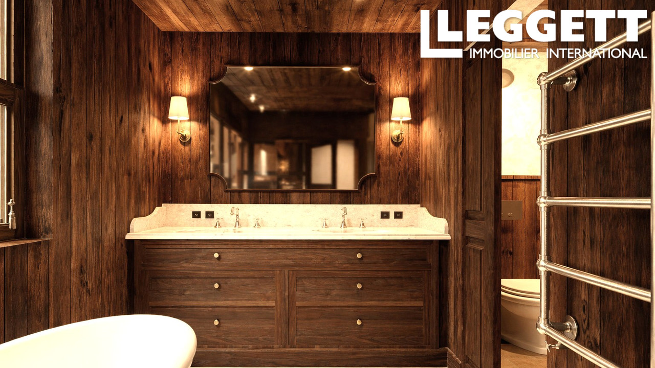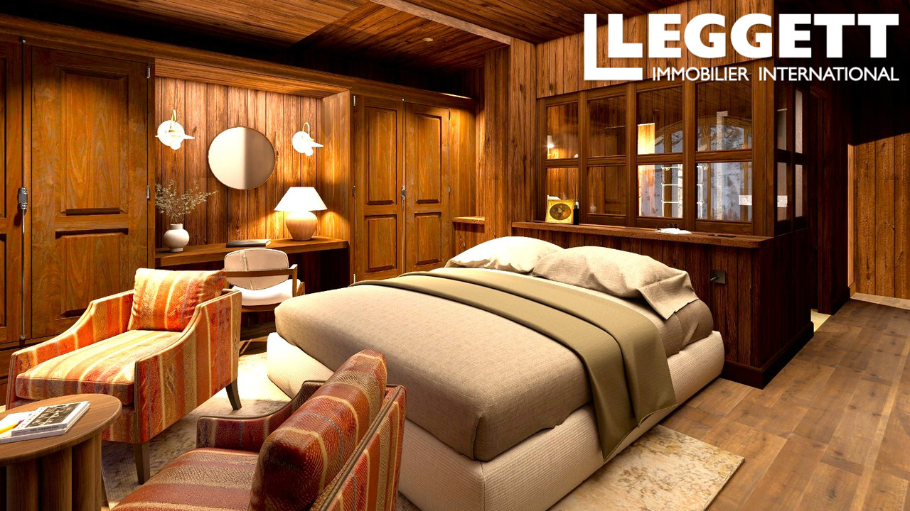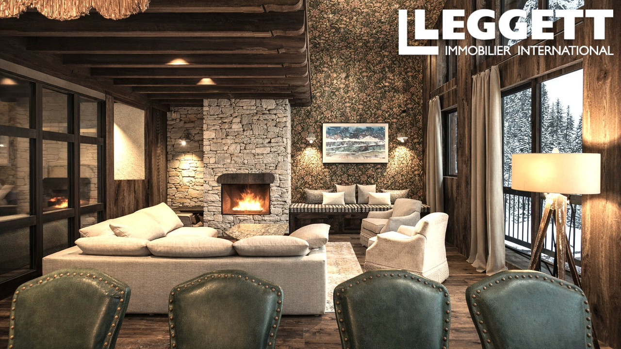 La propriété bénéficie d'une impressionnante cheminée, de hauts plafonds voûtés et d'une vue imprenable sur la piste emblématique de Le Face grâce à une façade vitrée à double hauteur s'ouvrant sur une grande terrasse.