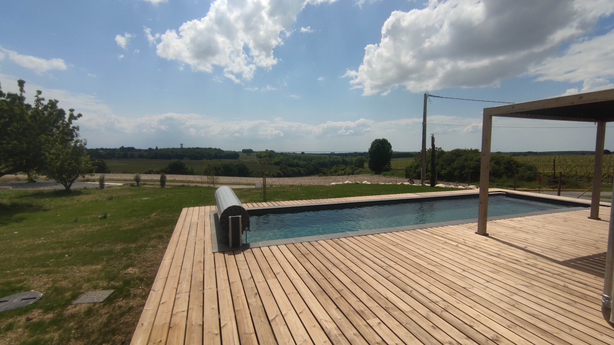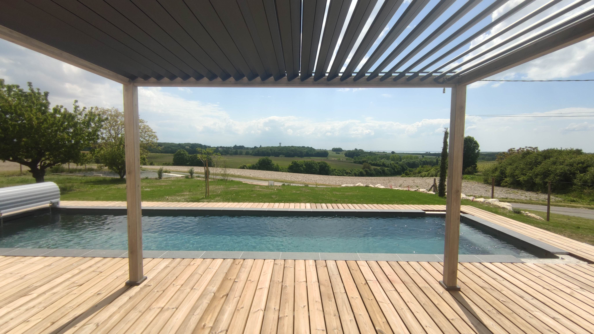 Pour compléter cette propriété, une piscine de 3x11 mètres (traitement au sel) et sa plage en bois de 108 m2, exposée Est et Sud, surplombe la campagne. Une pergola bioclimatique en aluminium viendra ombrager vos déjeuners en terrasse et un abri de jardin de 16 m2 acceuillera votre outillage.