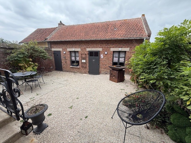 PROCHE AMIENS MAISON DE VILLAGE PLEINE DE CHARME AVEC BEL EXTERIEUR Offrant au rez de chaussée entrée, cuisine aménagée, vaste séjour avec belles cheminées, bureau/vestiaire, wc.