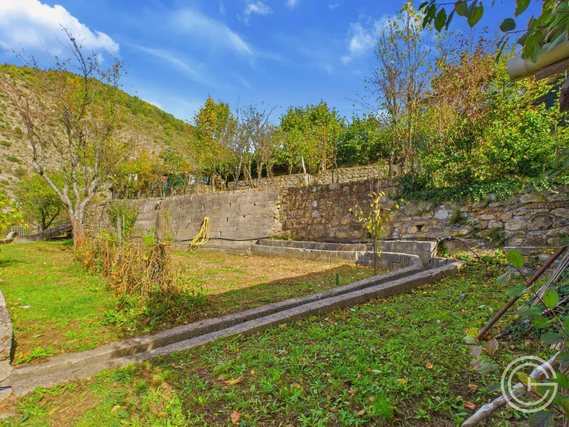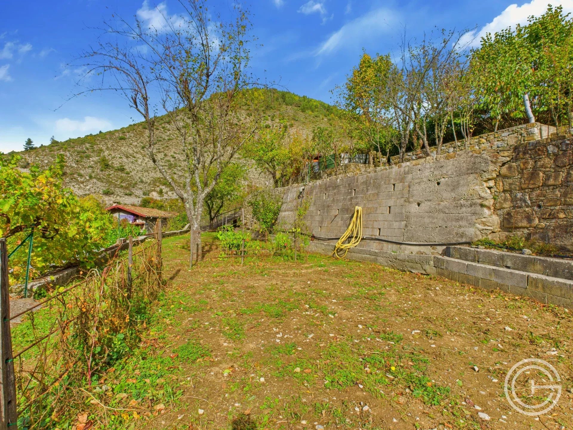 La construction est vendue avec plusieurs parcelles de terrain en restanques d'une surface totale de 1 313 m².