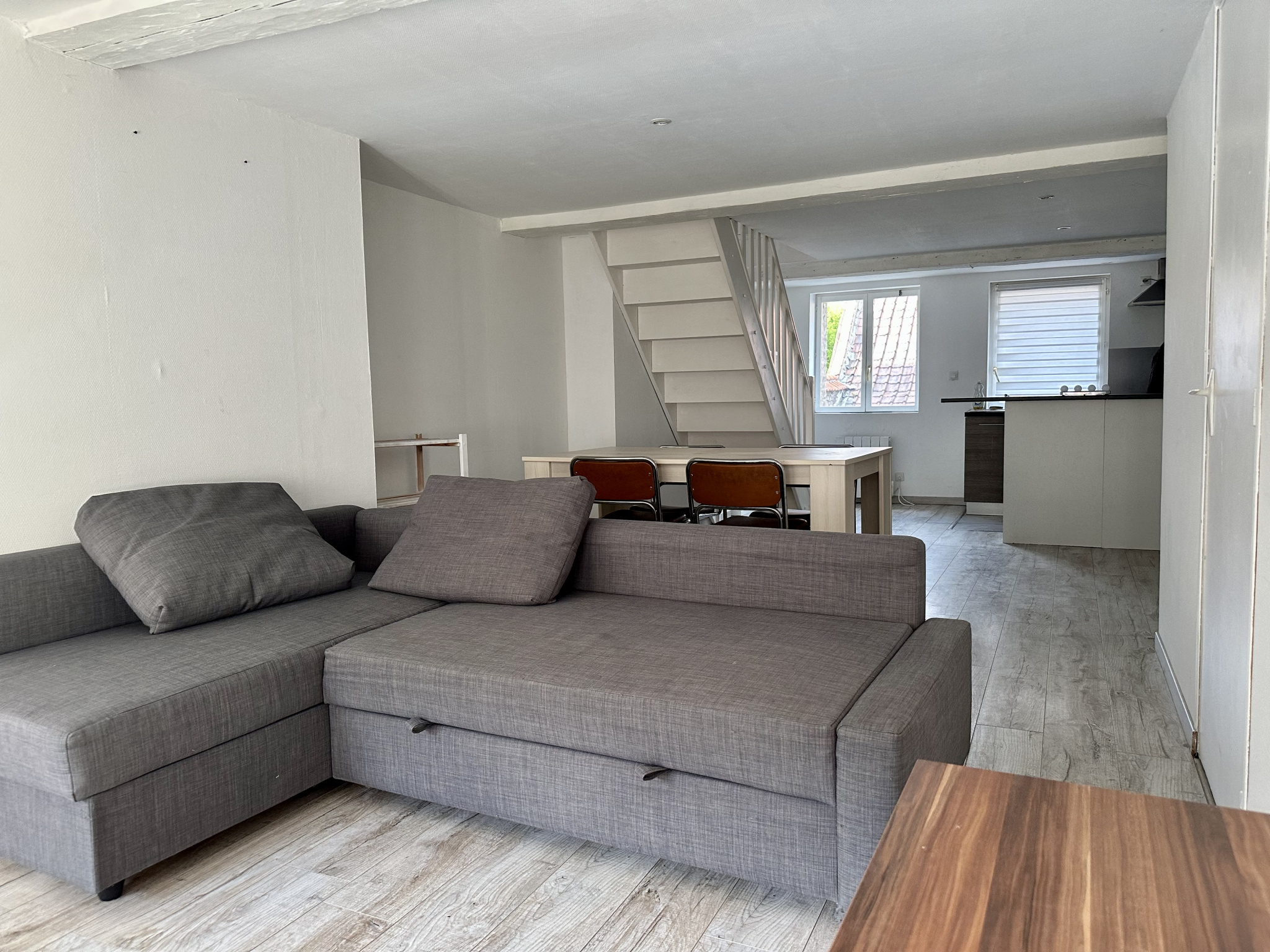 Le deuxieme étage dessert un duplex de plus de 70 m2 comprenant une grande pièce de vie avec cuisine, une salle de douche ainsi que des wc séparés et une chambre très spacieuse avec dressing à l'étage.