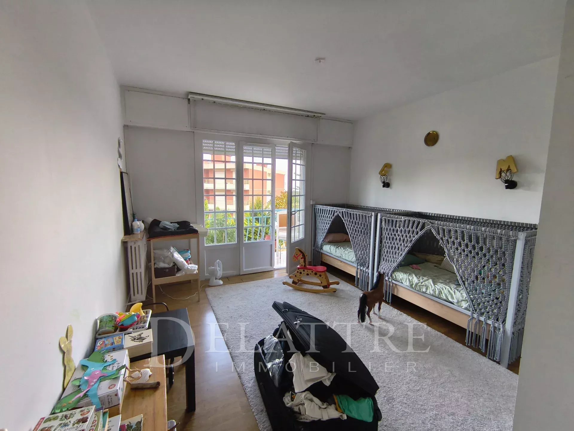 Proche de toutes commodités bel appartement T3 lumineux de 105 m² env. composé d'une entrée, séjour de 30 m² env., une cuisine, un cellier, deux chambres spacieuses, une salle de bain, une salle de douche.