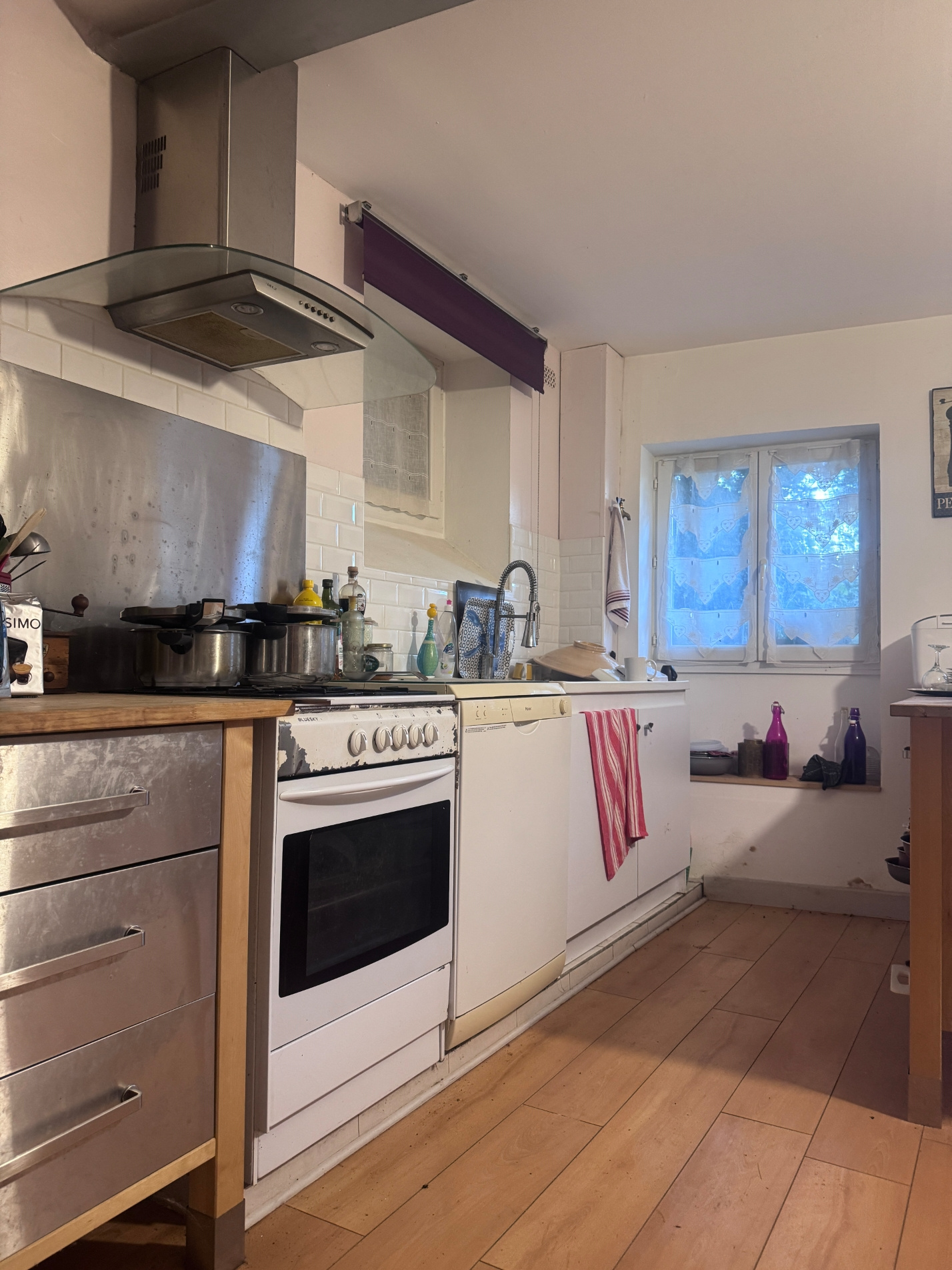 NERAC, quartier calme, maison pierre comprenant en rez-de-chaussée, un salon, un bureau, une chambre avec salle d'eau-wc. Au rez-de-jardin cuisine donnant sur jardin. Au 1er étage : une chambre, une pièce à restaurer. Idéal premier achat ou placement locatif.