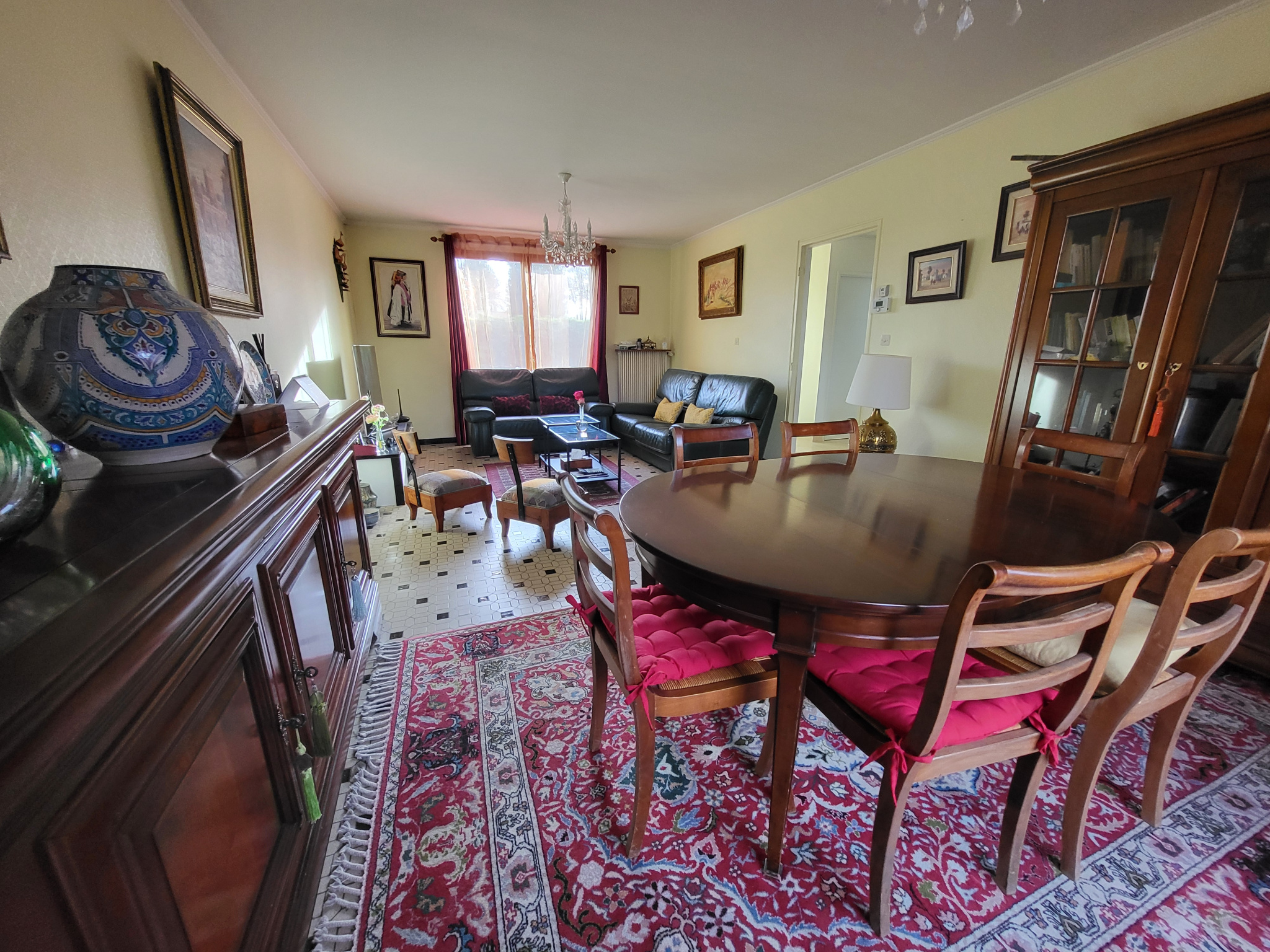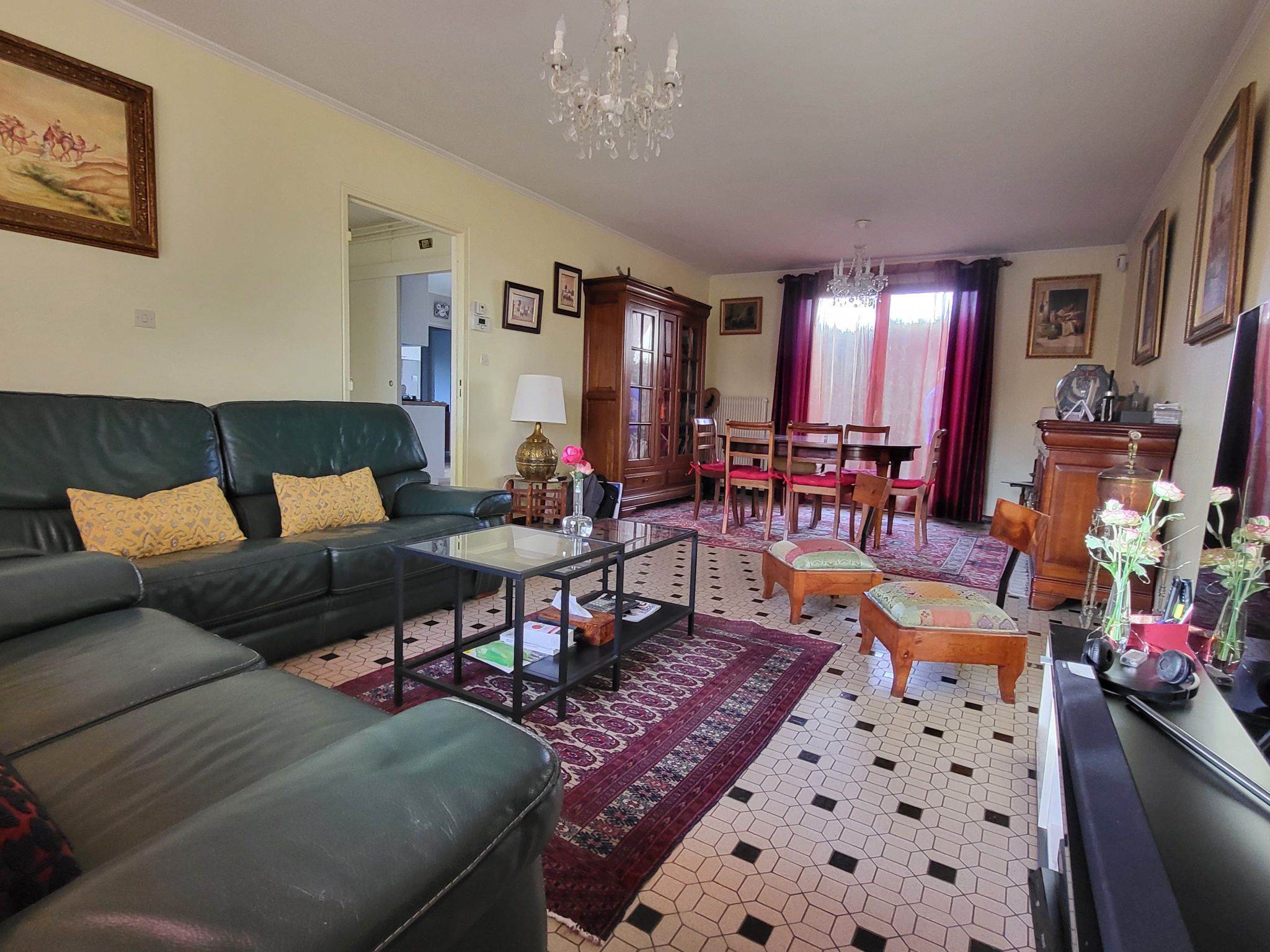 Belle prestation avec carrelage en travertin sur le rez-de-chaussée, Fenêtres double vitrage + volet roulant électrique.