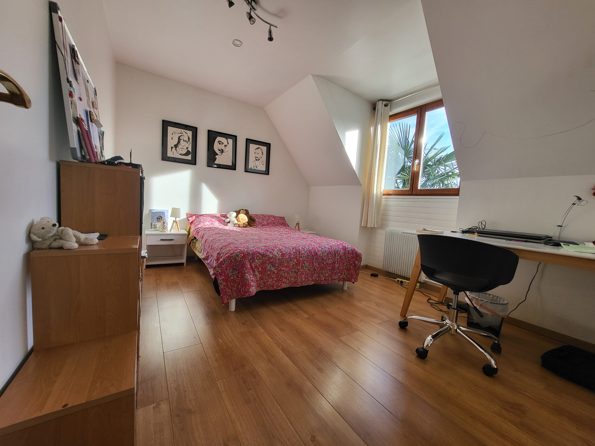 A l'étage : Palier desservant une chambre parentale (chambre + dressing), 3 chambres avec placards de rangement et une salle de bains.