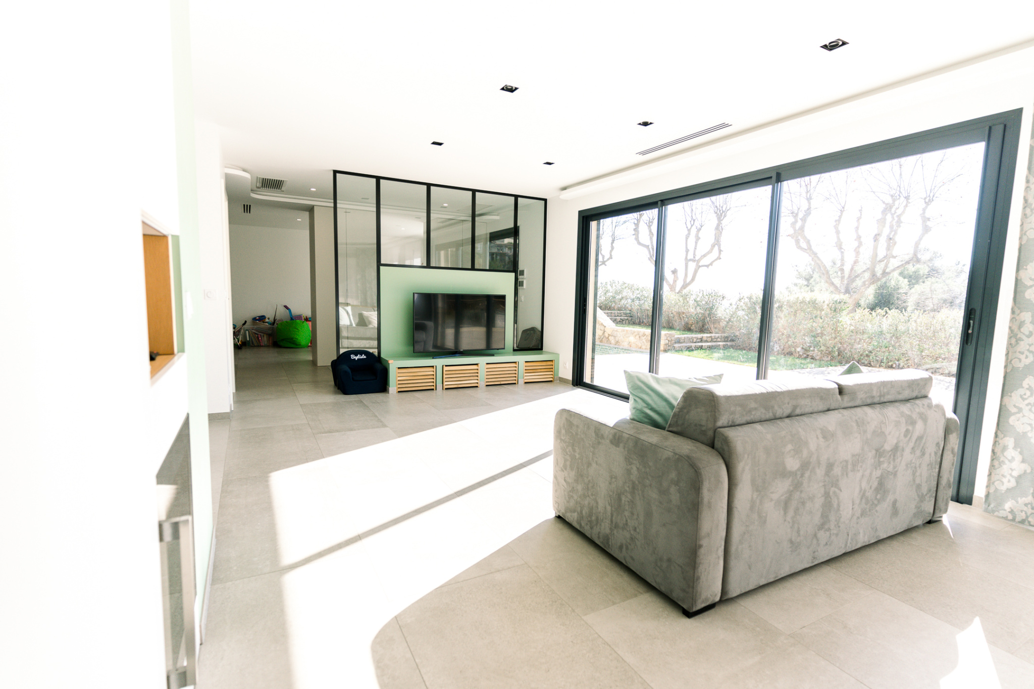 Dessinée sur plusieurs niveaux, la villa s'inscrit dans un esprit résolument moderne où la lumière, l'espace et les matériaux nobles dialoguent avec harmonie. Dès l'entrée, les volumes s'imposent avec élégance. Le rez-de-chaussée accueille un vaste espace de vie baigné de lumière, orienté Sud-Ouest, sublimé par de larges baies vitrées qui abolissent la frontière entre intérieur et extérieur, sans aucun vis-à-vis.