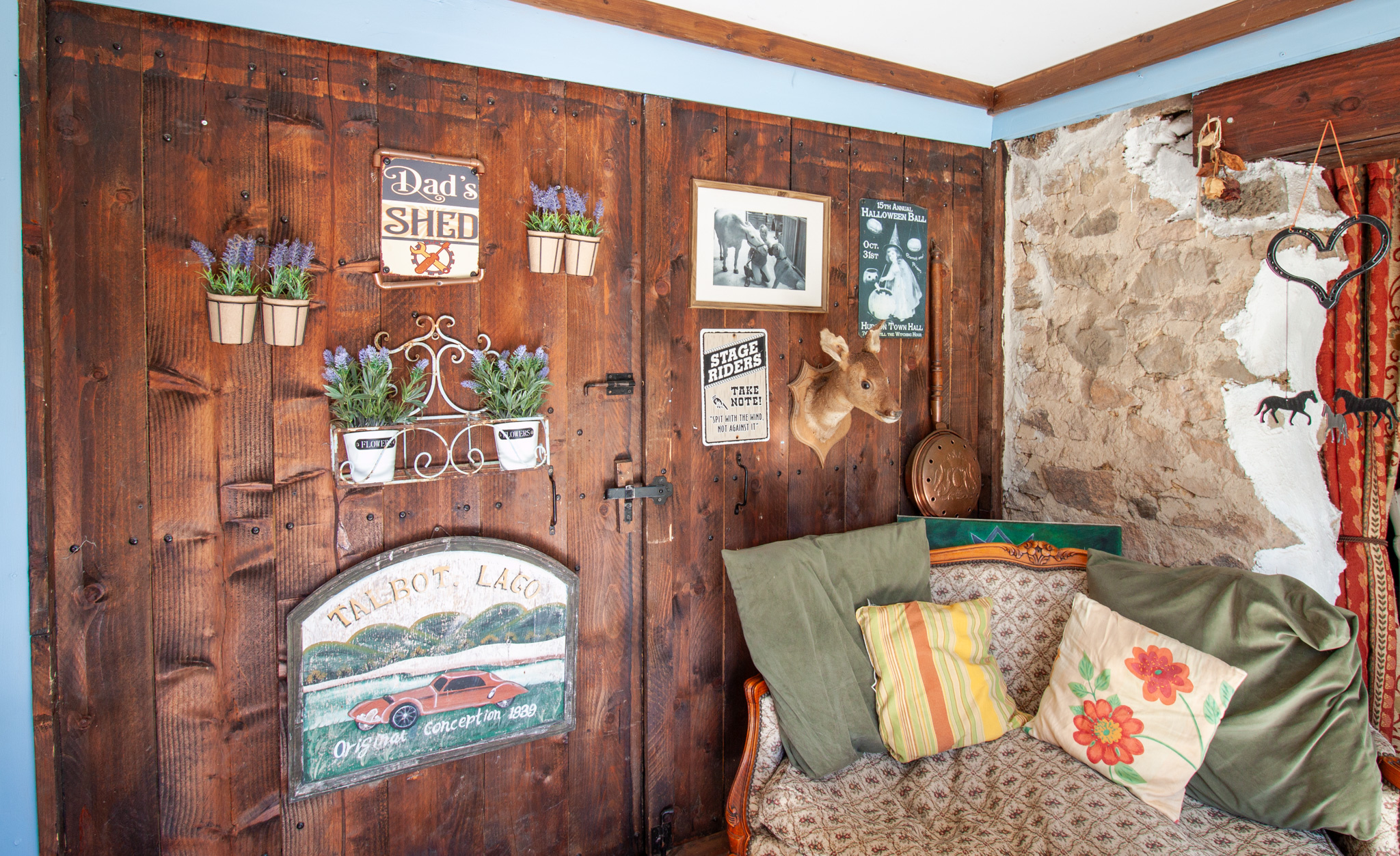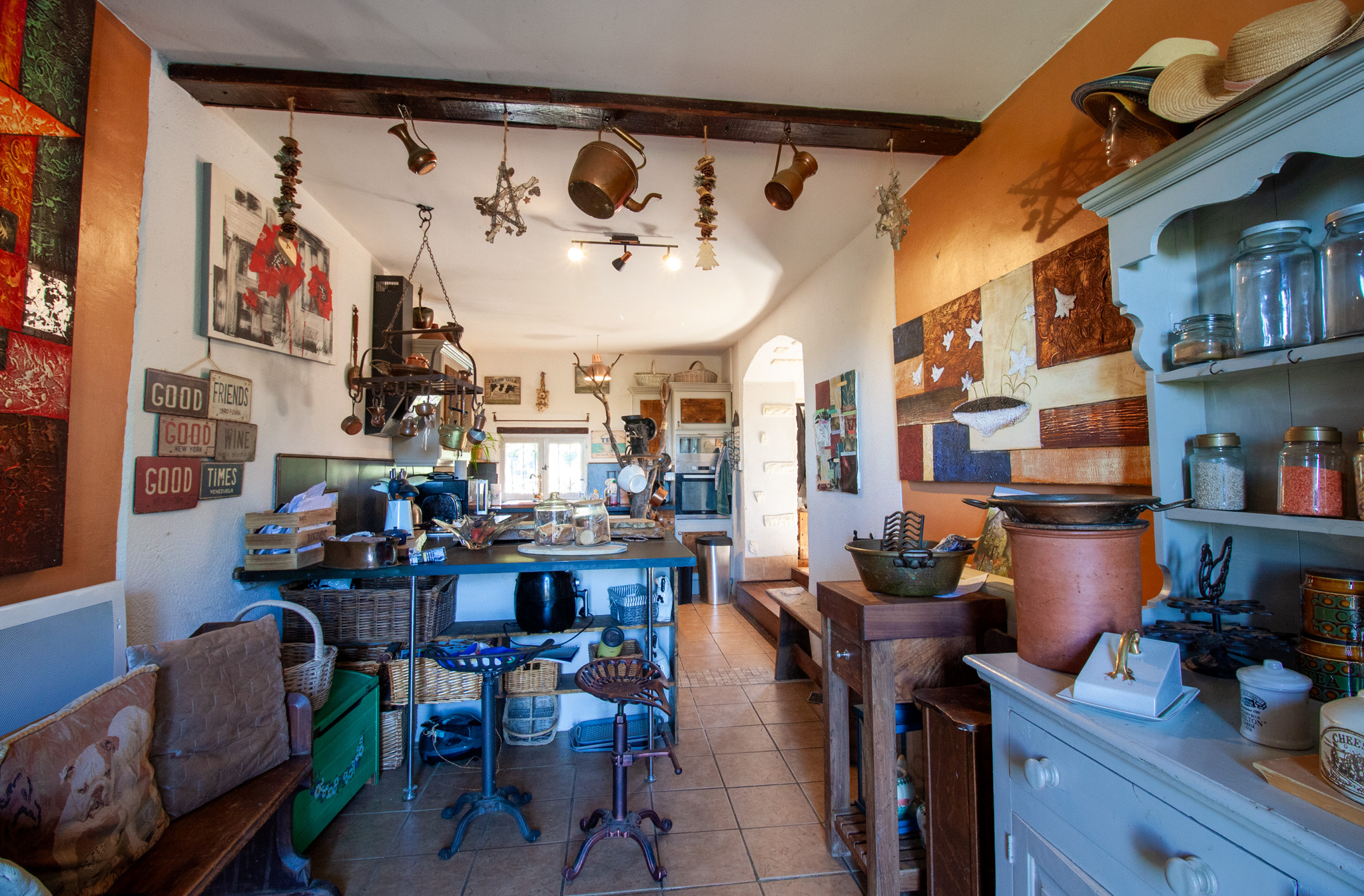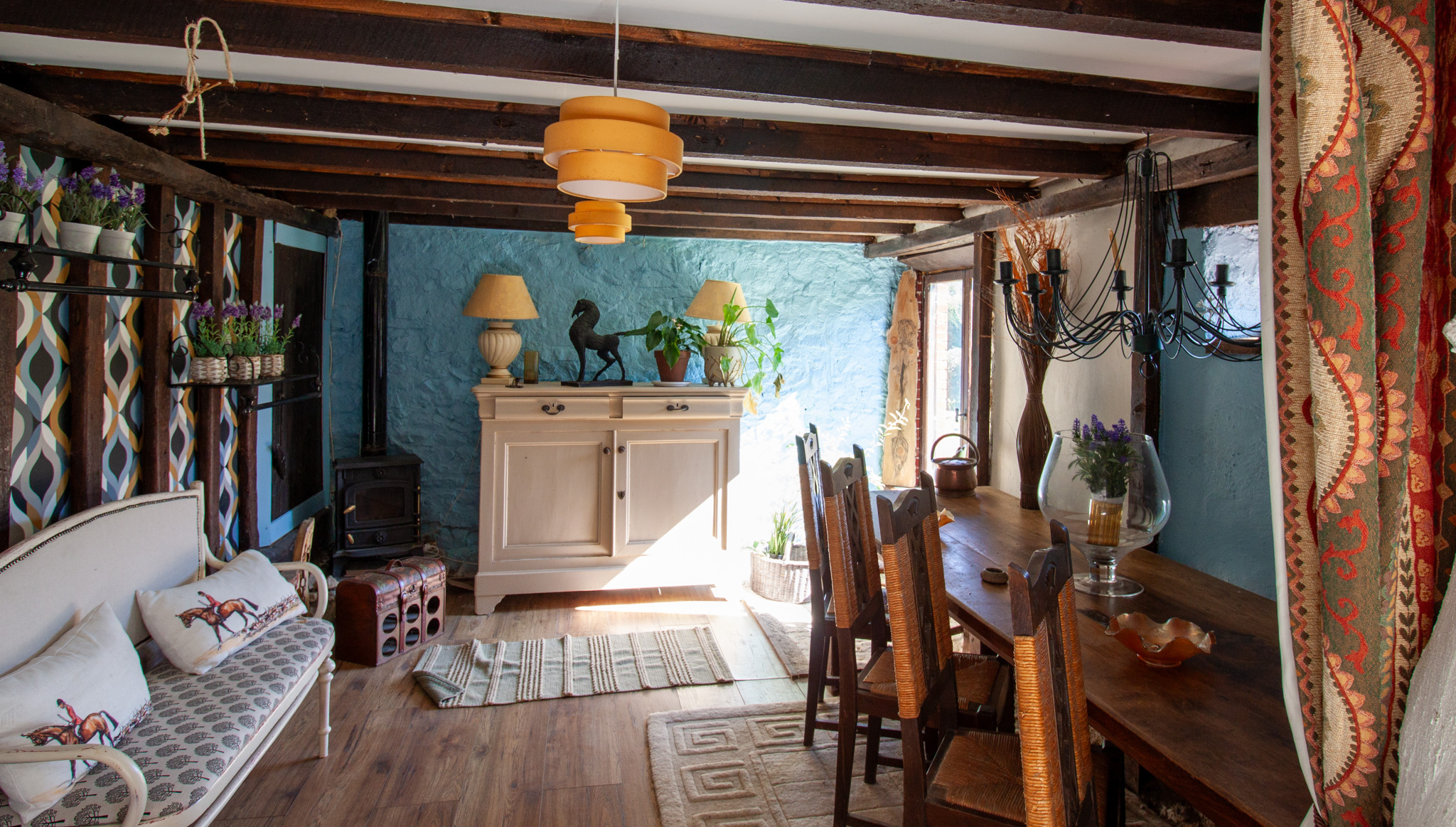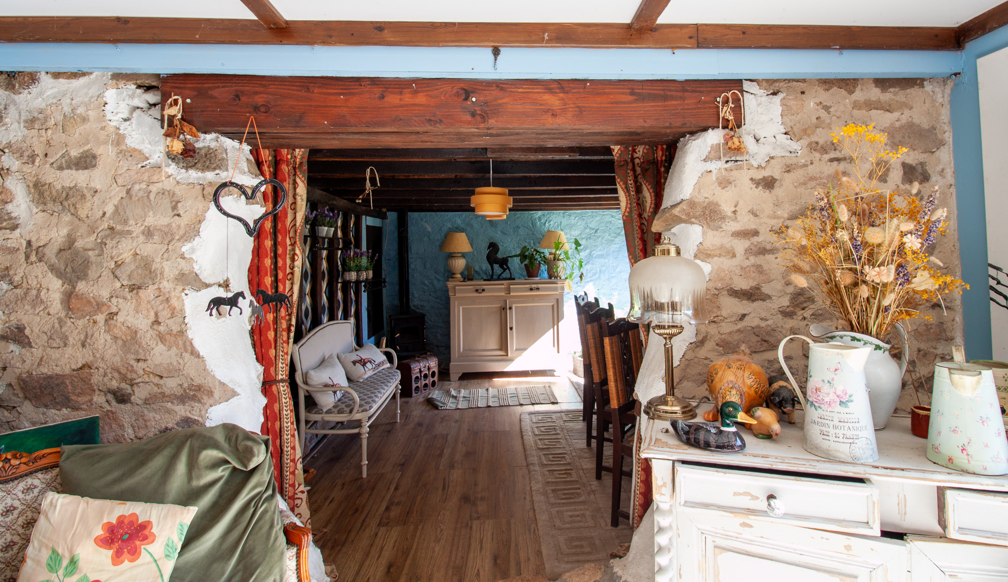 À l'intérieur, l'ambiance est à la fois chaleureuse et atypique, mêlant cachet et confort :