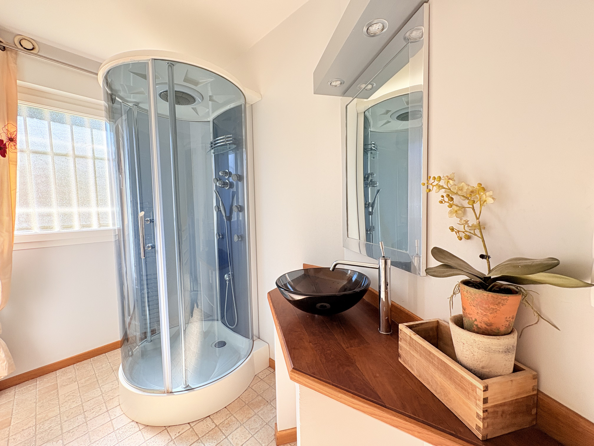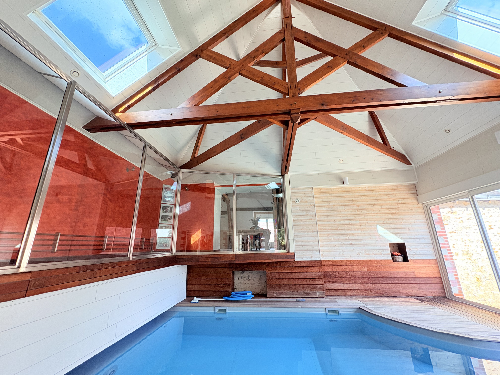 Son atout rare : une piscine intérieure chauffée intégrée dans un patio central, véritable espace bien-être.