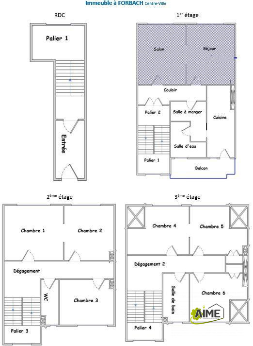 Du 1er au 3ème étage = Partie habitation (Actuellement libre d'occupants)
