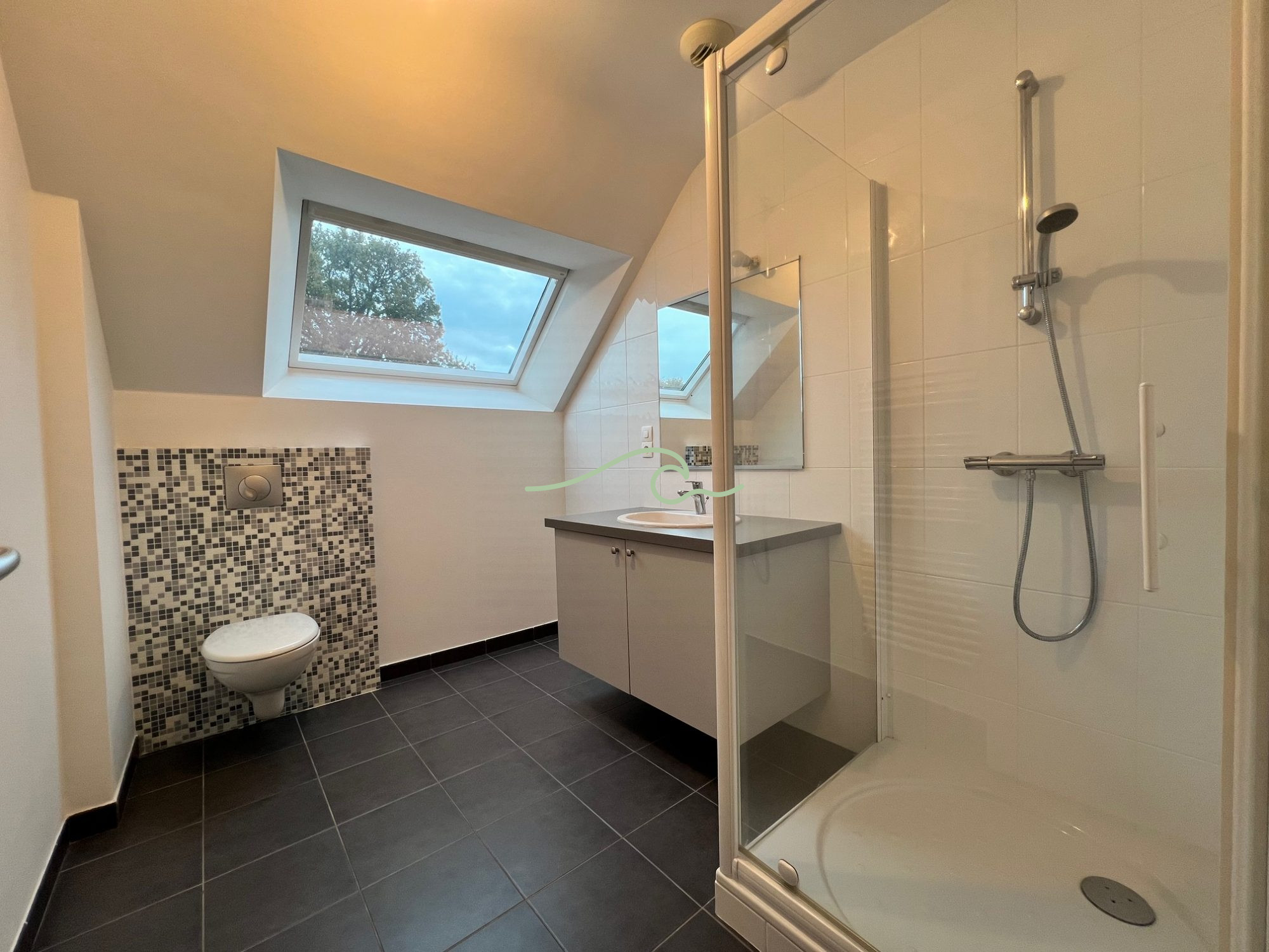 A proximité immédiate de la nature, jolie maison contemporaine bénéficiant au RDC d'une entrée lumineuse avec placards, une pièce de vie spacieuse et largement ouverte sur une terrasse et le jardin, une cuisine équipée, WC avec lave mains. Trois chambres à l'étage dont une avec dressing, salle de bains et douche, salle d'eau. Grand garage.