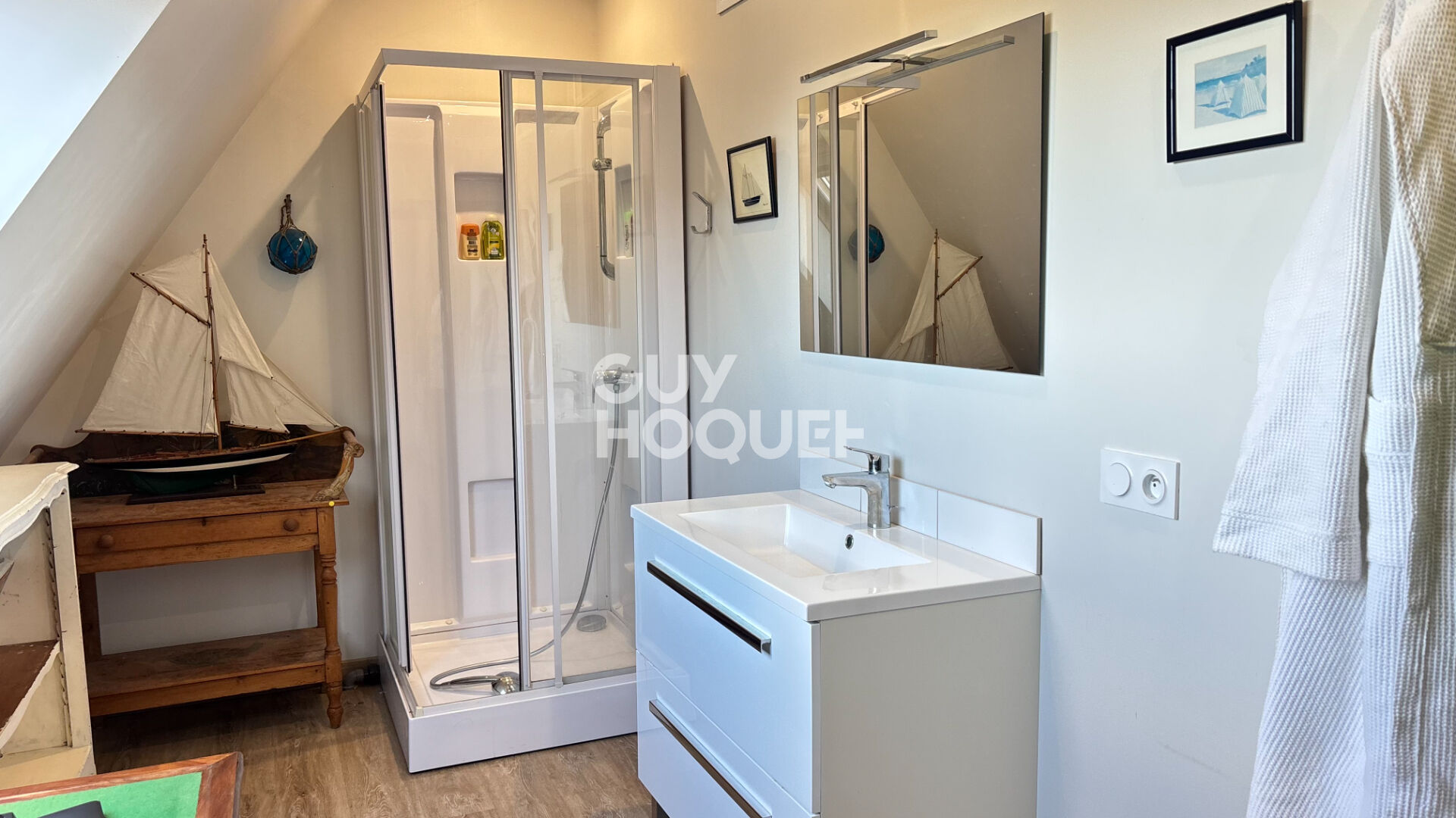 Le premier étage comprend deux chambres, dont une avec sa salle d'eau et son dressing privatifs, tandis que le second étage offre deux chambres supplémentaires et une salle de bains.