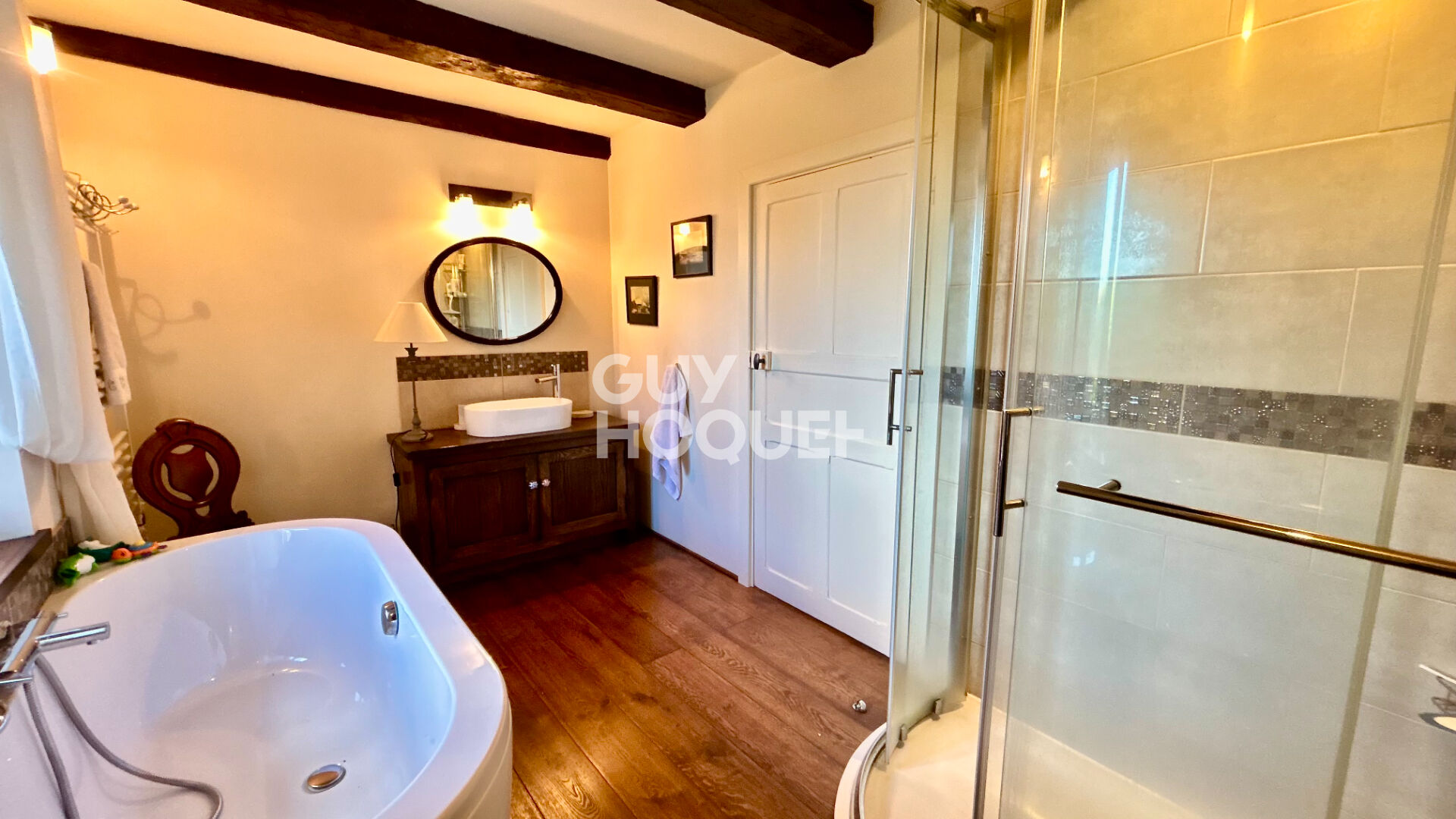 L'agence Guy Hoquet de Beaussais-sur-Mer vous propose à la vente cette maison pleine de charme, rénovée avec soin tout en préservant ses éléments authentiques : poutres apparentes, pierres et tomettes. Elle est édifiée sur un terrain arboré de plus de 2000 m², au coeur d'un hameau paisible de la campagne de Languenan.