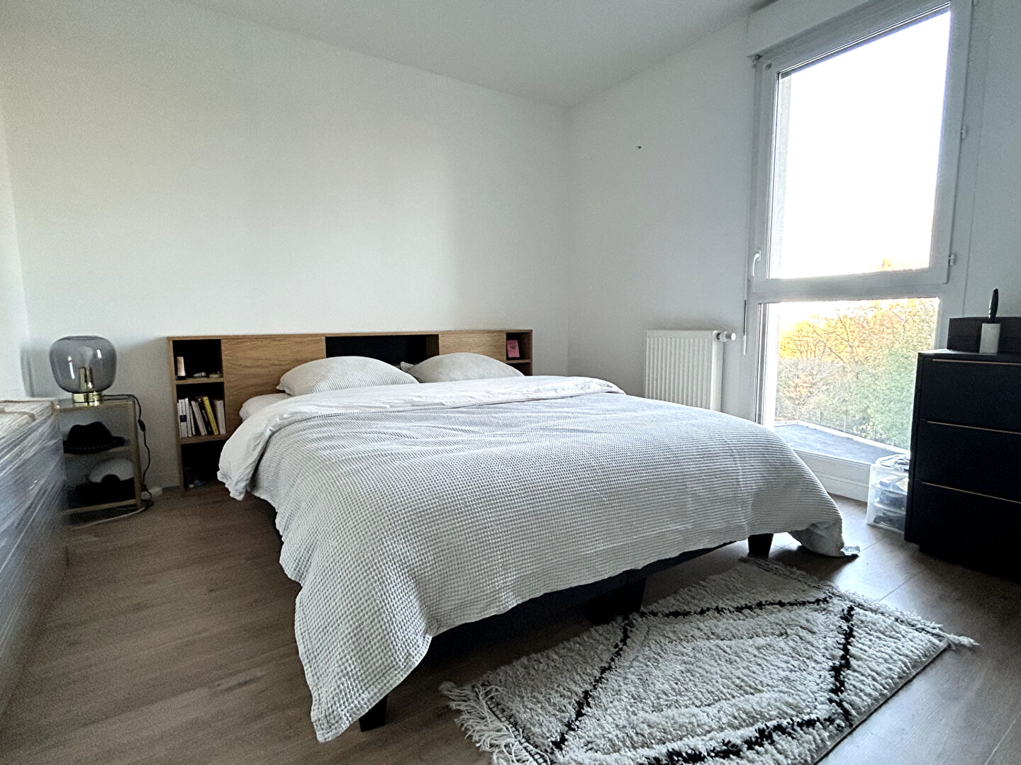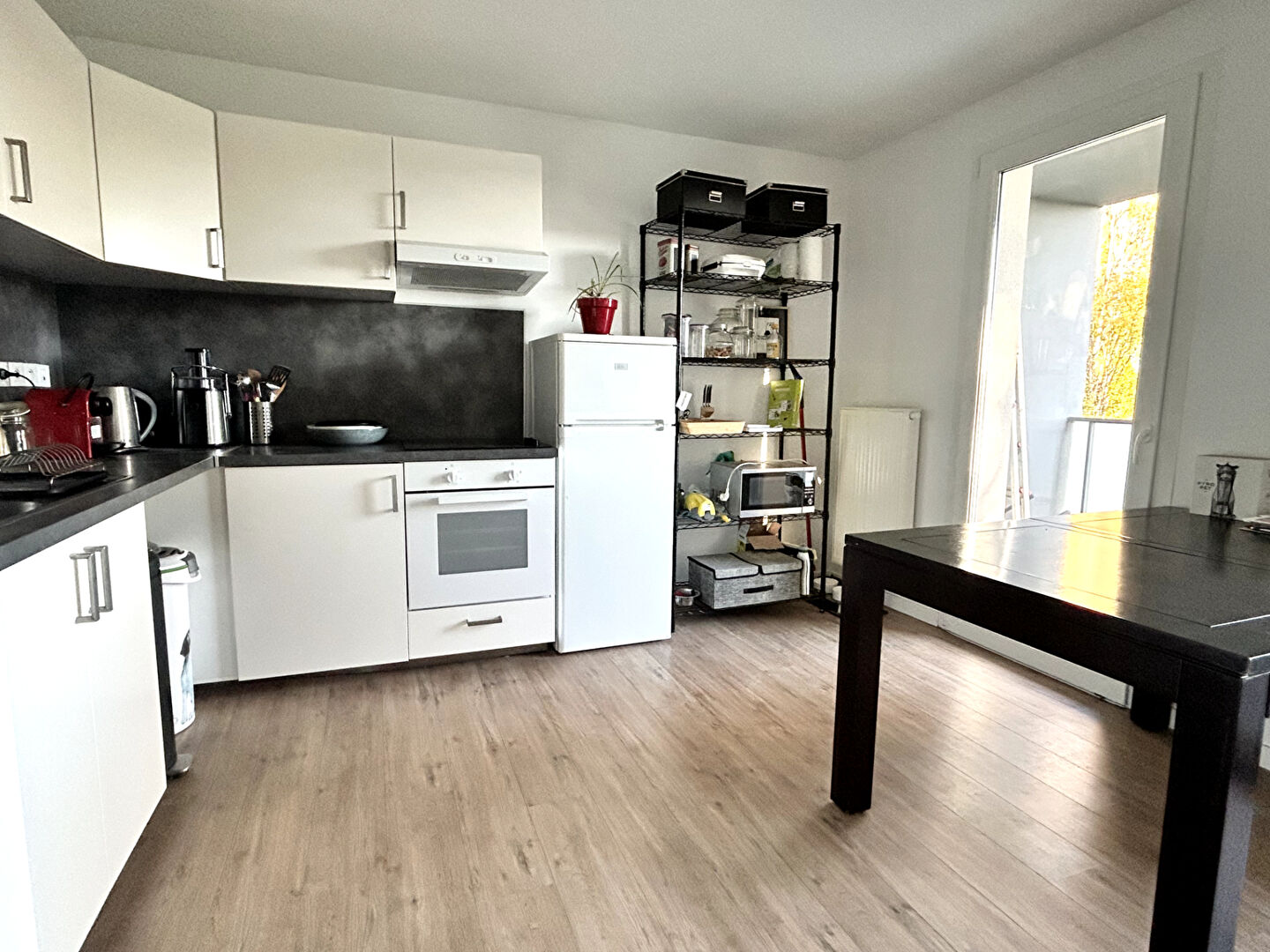 Au sein d'une résidence récente, situé au 3ème étage, appartement T3 de 62m2 offrant un hall d'entrée avec placards, un WC, une belle pièce de vie lumineuse avec espace salon, salle à manger, et cuisine aménagée et équipée, le tout donnant sur un beau balcon de 10m2 avec vue dégagée et environnement verdoyant. Côté nuit, une grande chambre de 12,65m2 avec placards, une seconde chambre de 9,30m2 et une salle de bains avec espace machine à laver. Également, un garage box sécurisé. Appartement en très bon état général, sans vis à vis, à deux pas de la Gare de Ma Madeleine et des commerces. Chauffage gaz individuel, Faibles charges 1440Euro / an, DPE C.