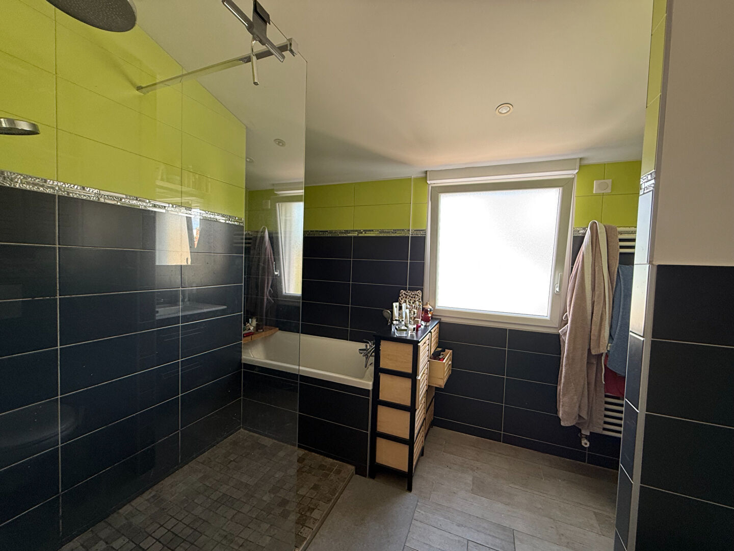 À l'étage, profitez d'une spacieuse mezzanine avec coin salon, de deux grandes chambres avec placards, une salle d'eau et wc.