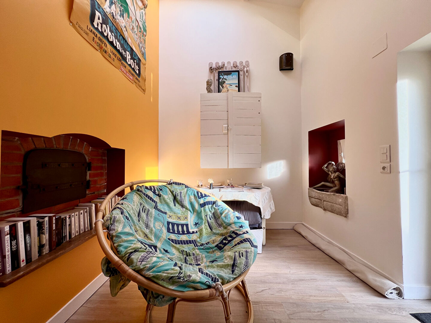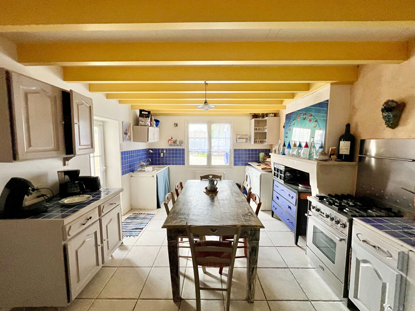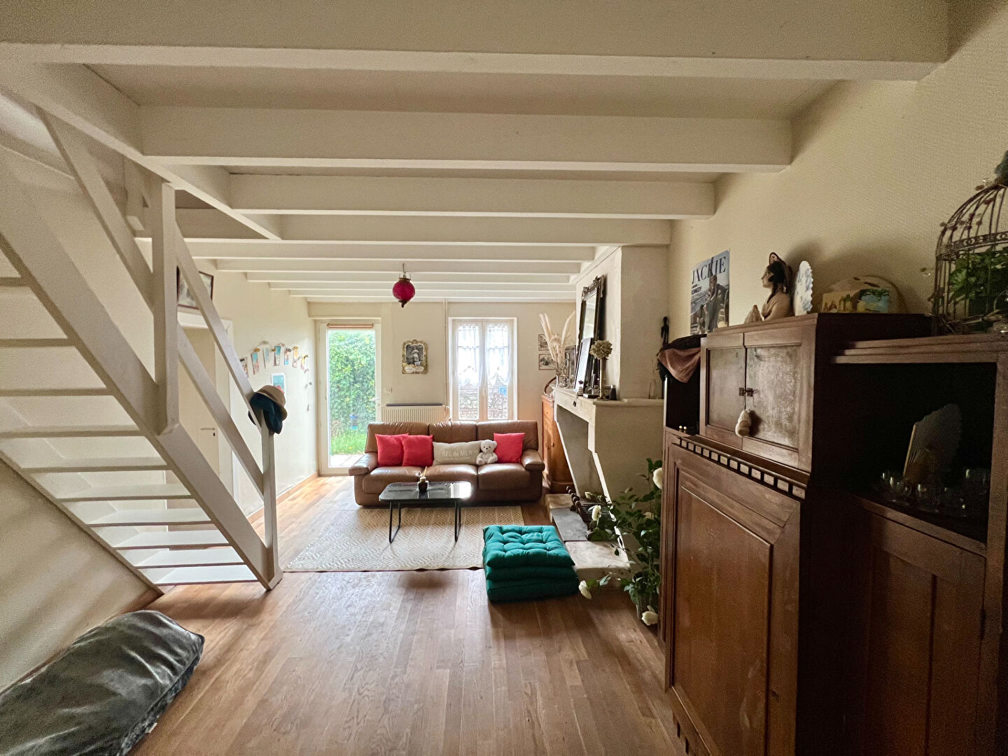 Cette propriété séduit par son authenticité et son caractère, avec ses murs en pierre, ses poutres apparentes, sa cheminée et son ancien four à pain, qui lui confèrent une atmosphère unique et chaleureuse.