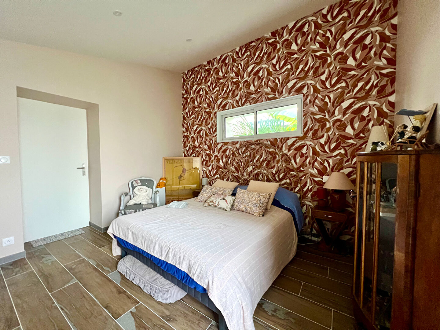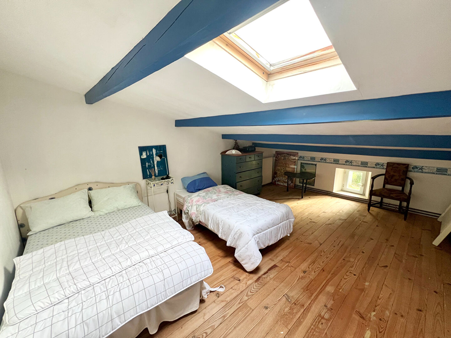 À l'étage, deux chambres en mezzanine et une salle de bain avec WC offrent un espace nuit convivial et lumineux. Une quatrième chambre avec salle d'eau, accessible par le patio, garantit une indépendance appréciable pour recevoir famille ou amis.