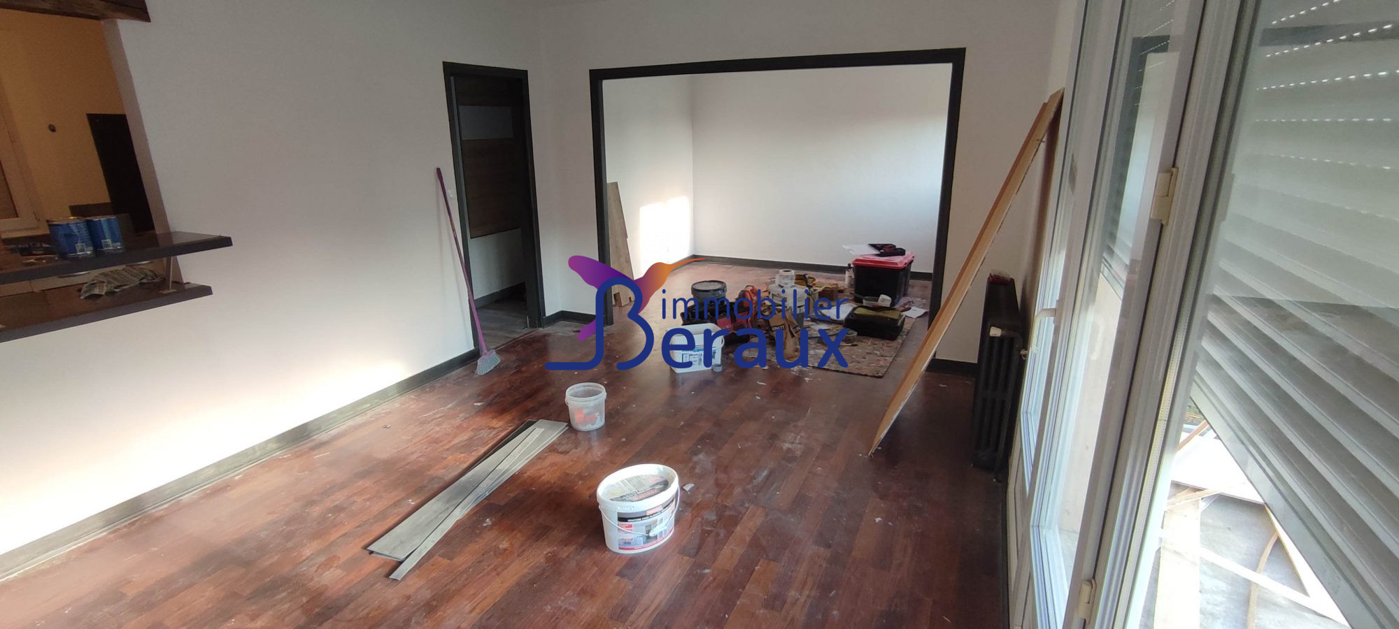 Secteur calme a proximité des écoles et commerces, BerauxImmobilier vous propose cette maison mitoyenne d'un côté, de plain-pied sur sous-sol total.