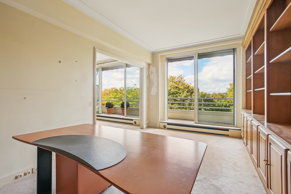 Cet appartement traversant exposé ouest/est, situé au 5ème étage avec ascenseur vous séduira par la lumière, les volumes généreux et les vues dégagées sur verdure (Bois de Boulogne jusqu'à la Défense / Parc paysagé) sur lesquelles s'ouvrent ses larges baies vitrées.