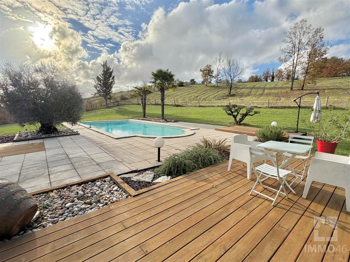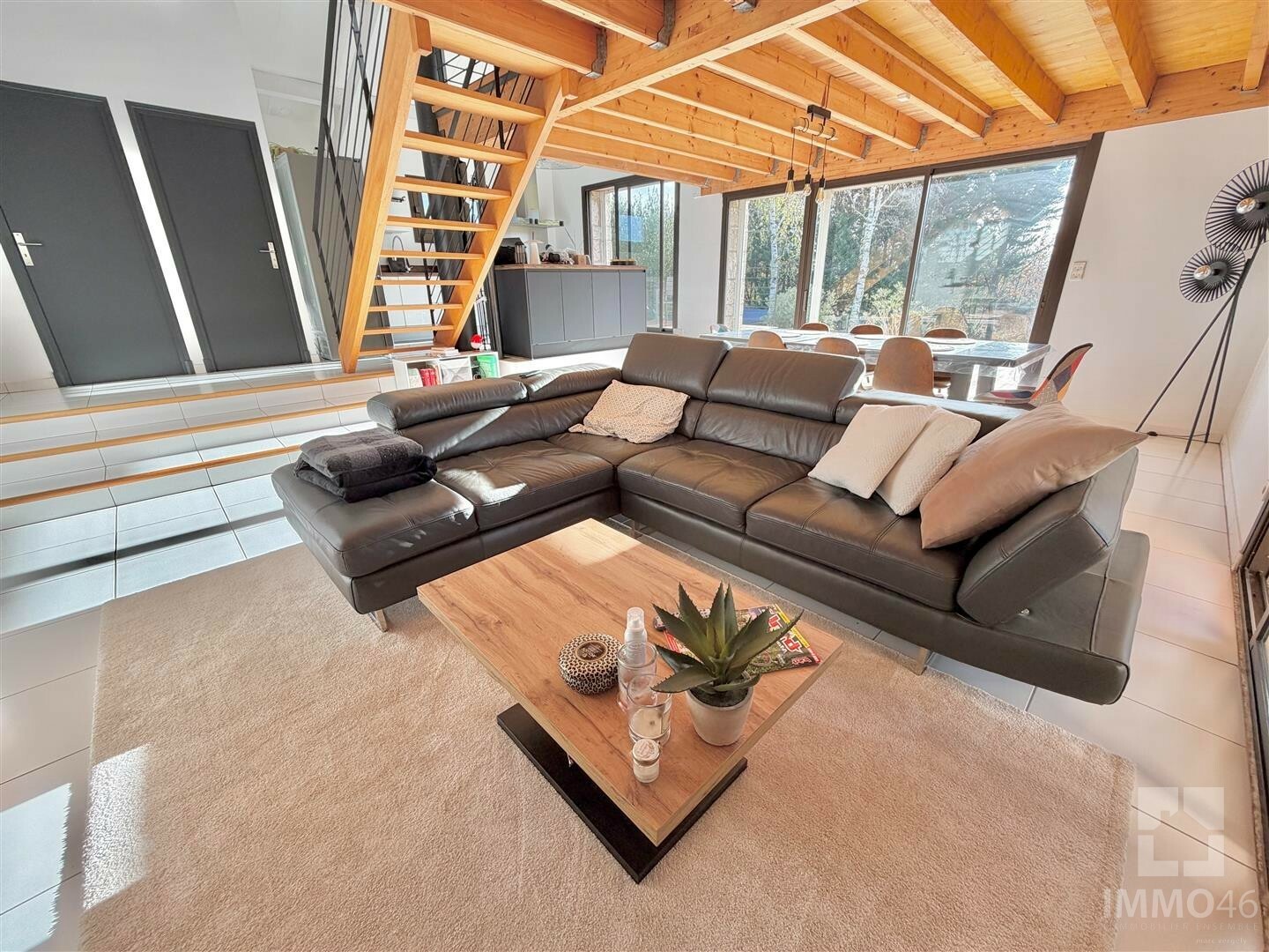 L?agence IMMO46 a le plaisir de vous présenter à la vente cette maison contemporaine érigée sur un sous-sol total, offrant de beaux volumes et implantée sur un magnifique parc paysager de près de 1.6 hectares, complété par 2 hectares non attenants.