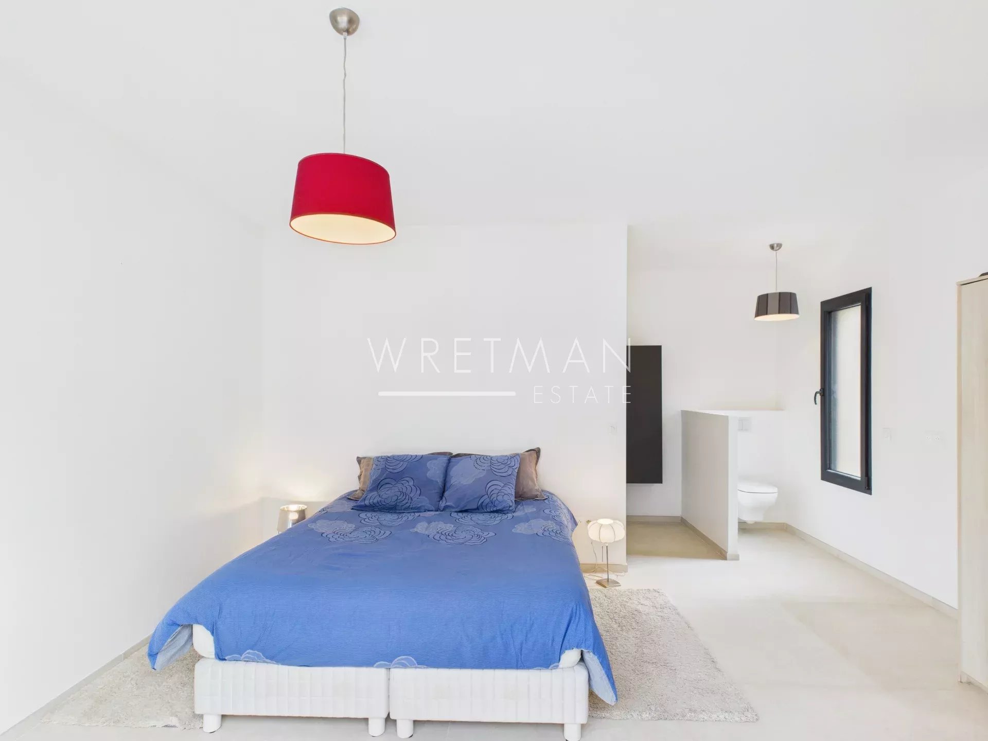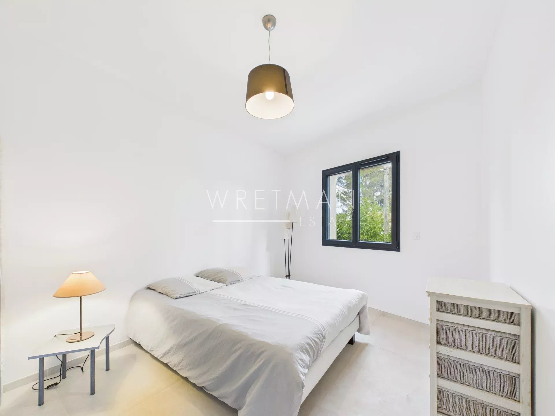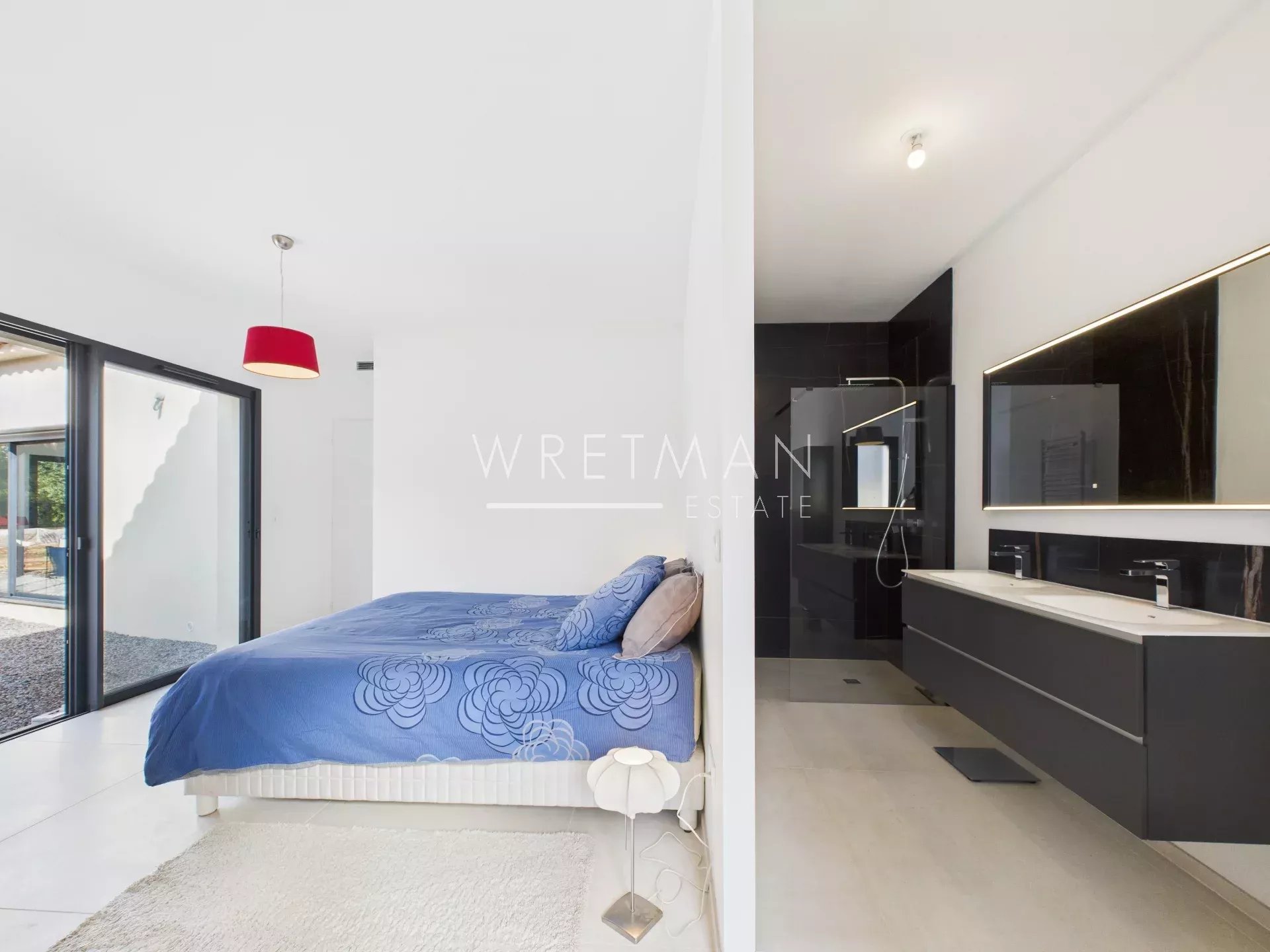 La villa propose une belle suite parentale avec salle d’eau et toilettes privatives donnant directement sur le jardin, ainsi que deux chambres supplémentaires, une seconde salle d’eau et un WC indépendant, offrant à chacun son intimité et son confort.