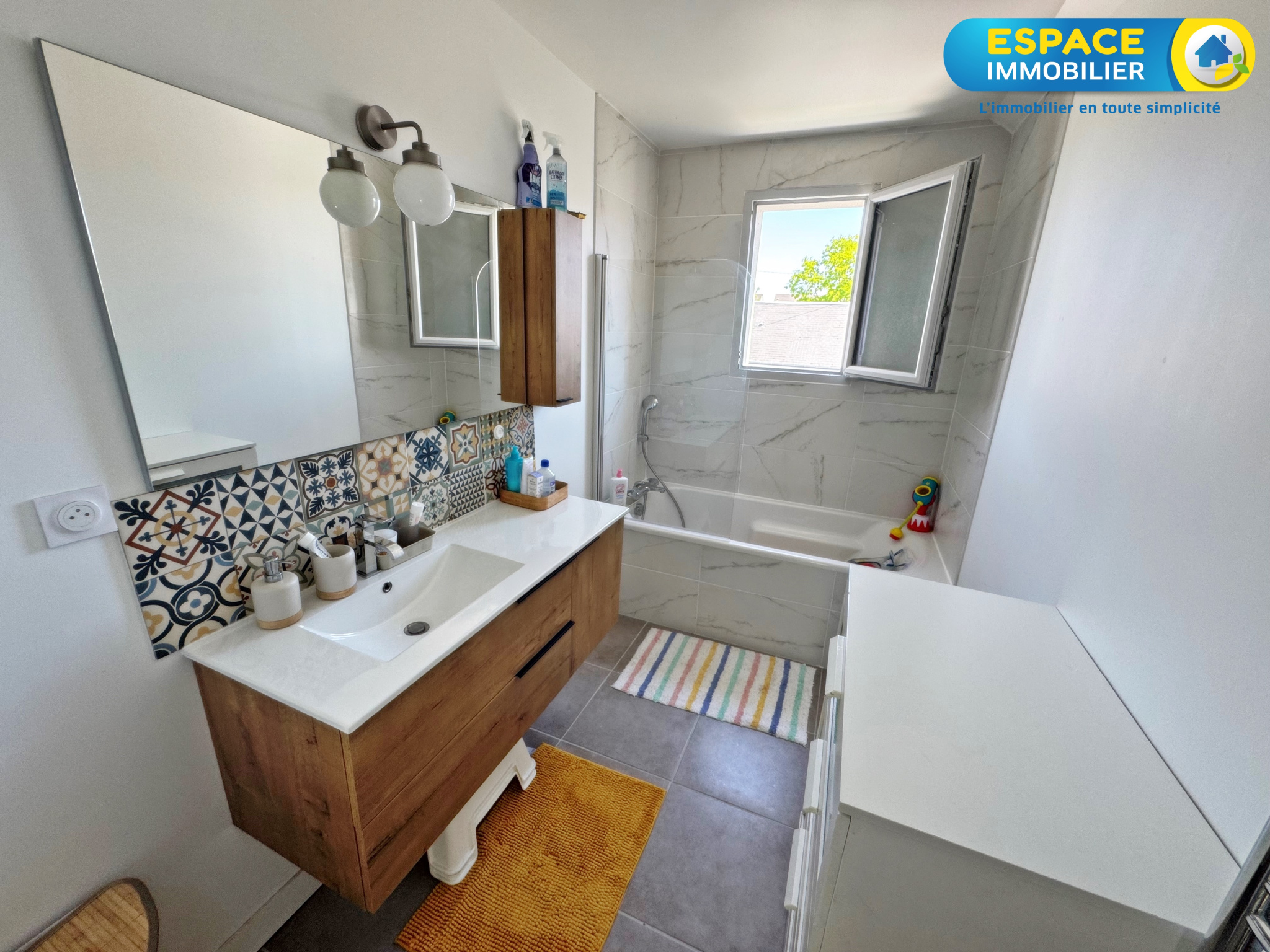 Maison neuve d'environ 90 m2 comprenant au rez-de-chaussée une entrée avec placards, une cuisine ouverte aménagée et équipée, un cellier, spacieux séjour salon équipé d'une climatisation réversible et l'accès sur la terrasse, salle d'eau avec une douche à l'italienne et un WC.