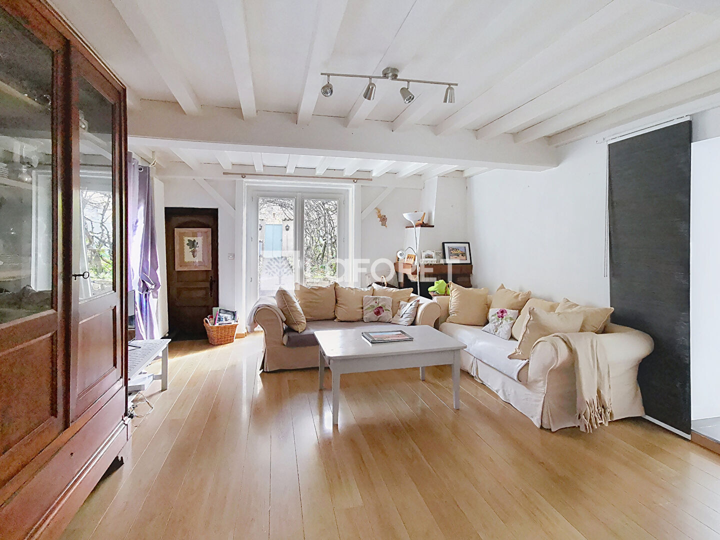 Charme de l'ancien conservé (pierres, poutres, cheminée)