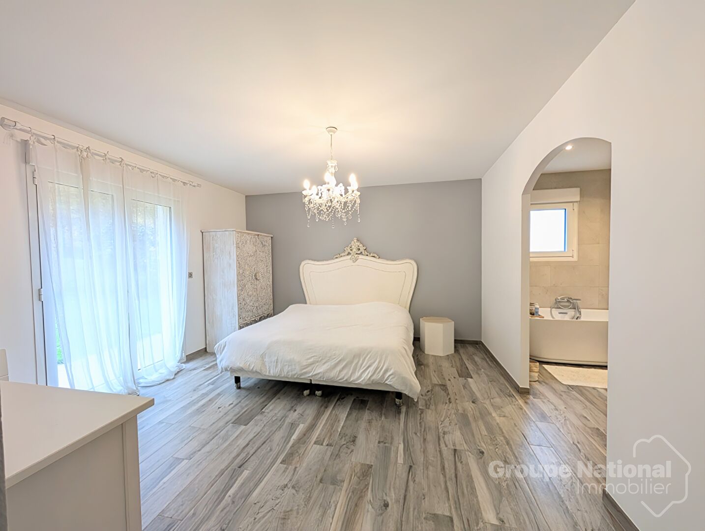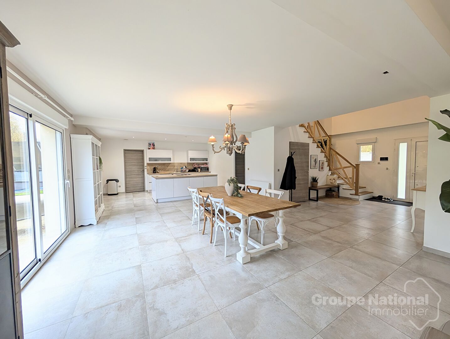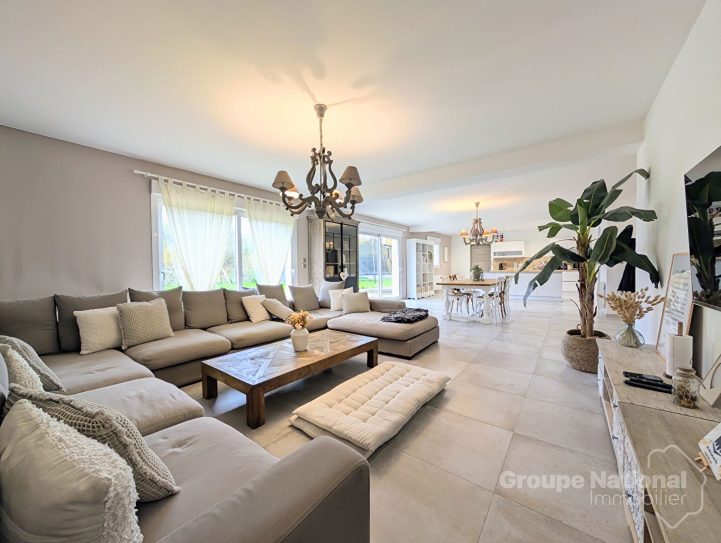 - Au rez de chaussée : une entrée sur dégagement donnant sur une chambre parentale avec sa salle de bain-douche , un triple séjour lumineux avec sa cuisine ouverte amenagée et équipée, une buanderie, couloir , WC, un dressing.