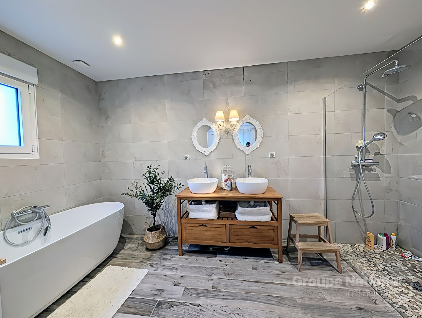 Les plus+++ : Huisseries en aluminium double vitrage avec volets roulants , Ballon d'eau chaude thermodynamique, porte motorisée.