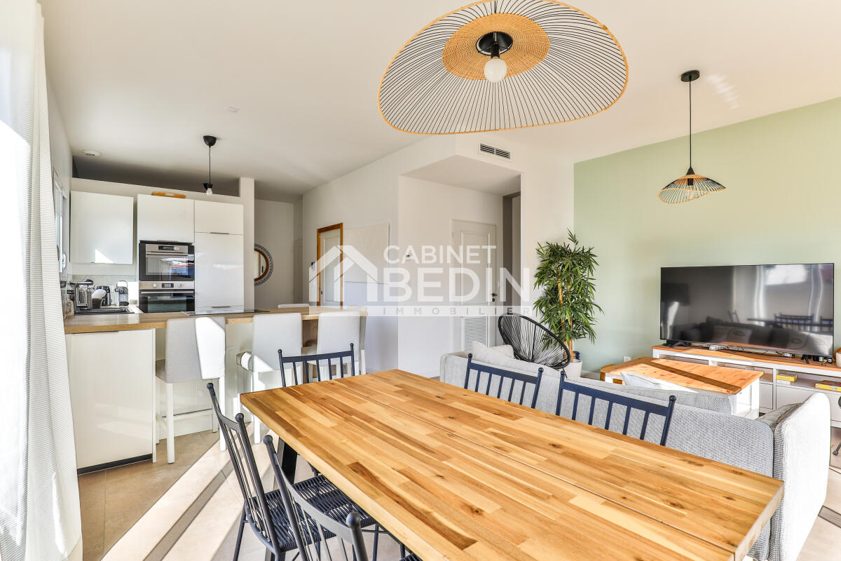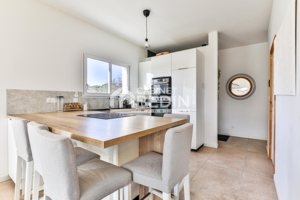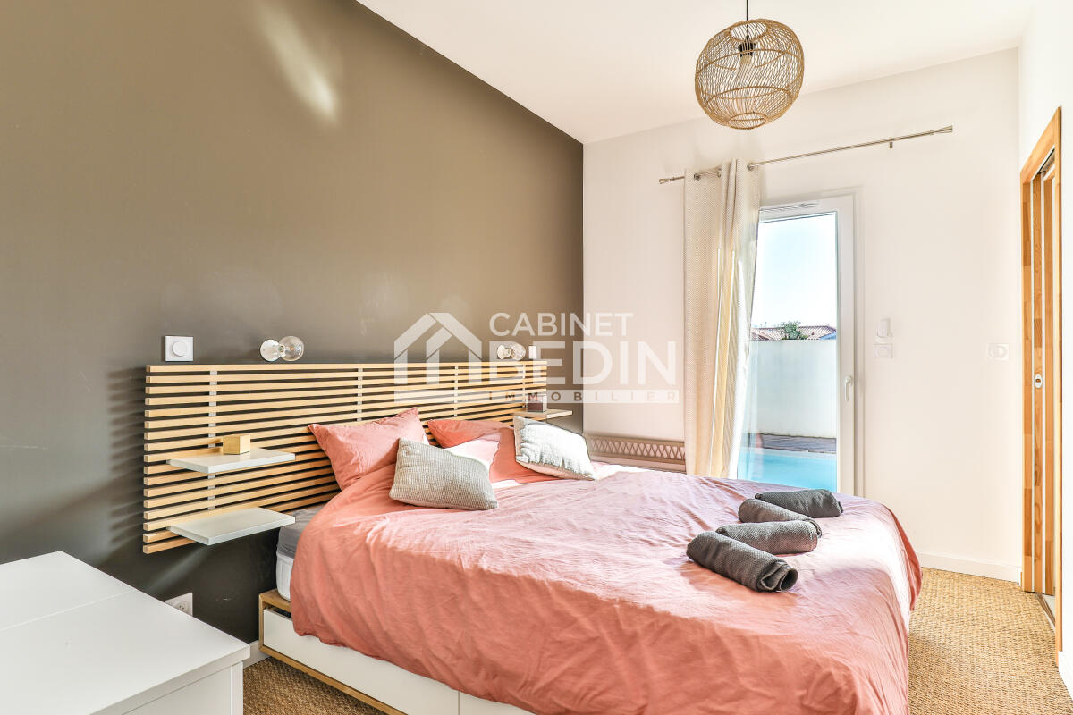 biscarrosse. Découvrez cette superbe maison quasi neuve offrant 3 chambres confortables et un bureau idéal pour le télétravail. Son vaste espace de vie ouvert de plus de 40 m² réunit salon, cuisine et séjour dans une ambiance chaleureuse et lumineuse. Vous profiterez d?une salle d?eau moderne et d?une salle de bain familiale. Le garage indépendant de plus de 20 m² est carrelé, isolé, avec eau et électricité. Le tout sur un terrain de 500 m² avec une piscine au sel, parfaite pour vos étés ensoleillés.