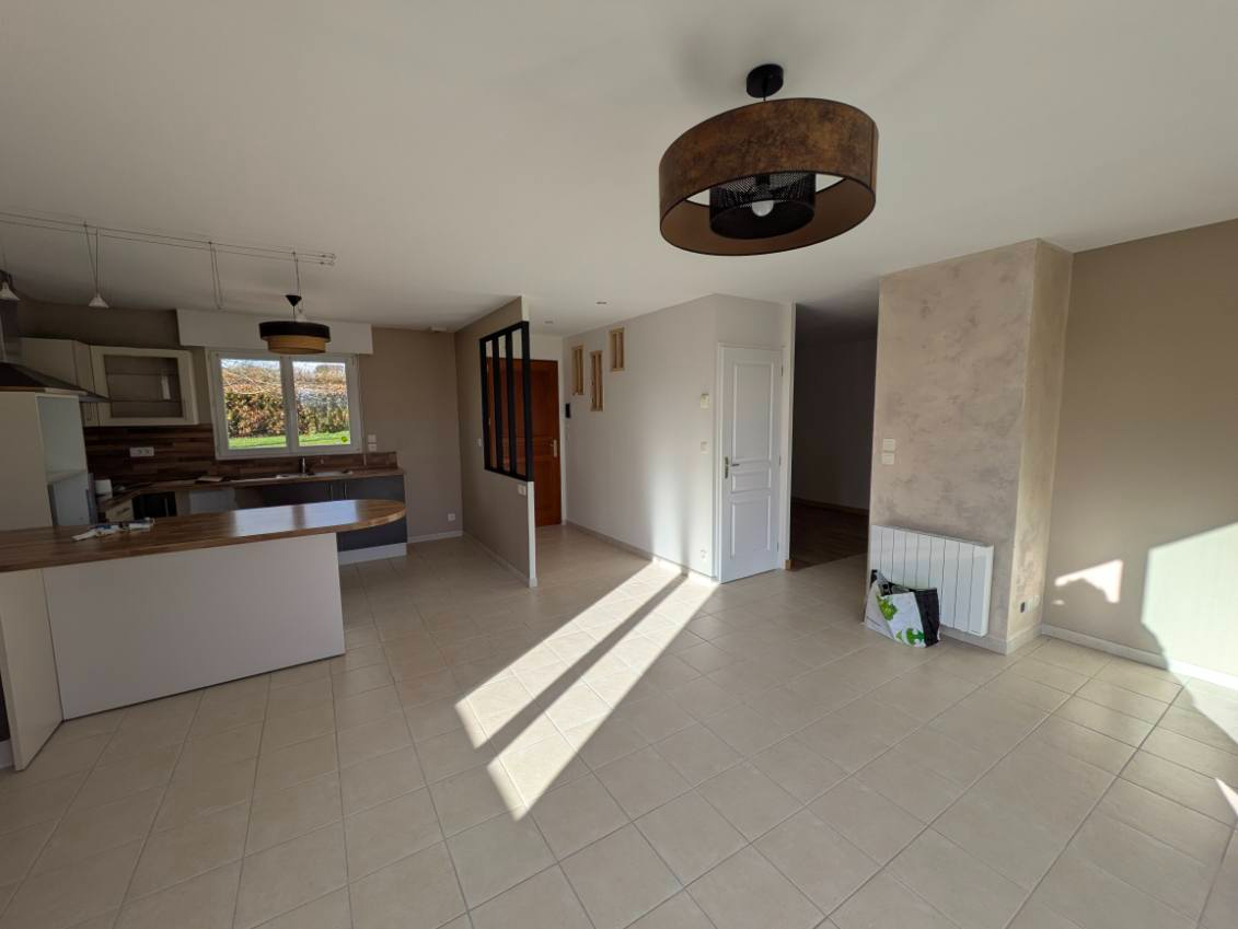Caen Ouest, entre Evrecy et Villers-Bocage, maison de 2003 comprenant : Entrée, salon-séjour avec accès terrasse exposée plein sud, cuisine ouverte A/E, deux chambres, un bureau, salle d'eau. A l'étage, deux grandes chambres sous combles et salle de bains.