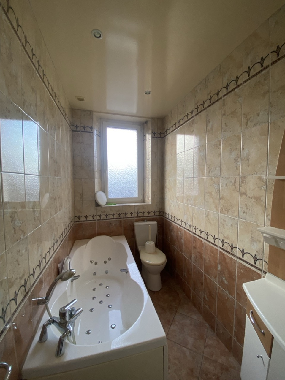 A l'étage, 3 chambres offrant de beaux volumes, dont une avec balcon. Une salle de bains avec baignoire balnéo et un WC.