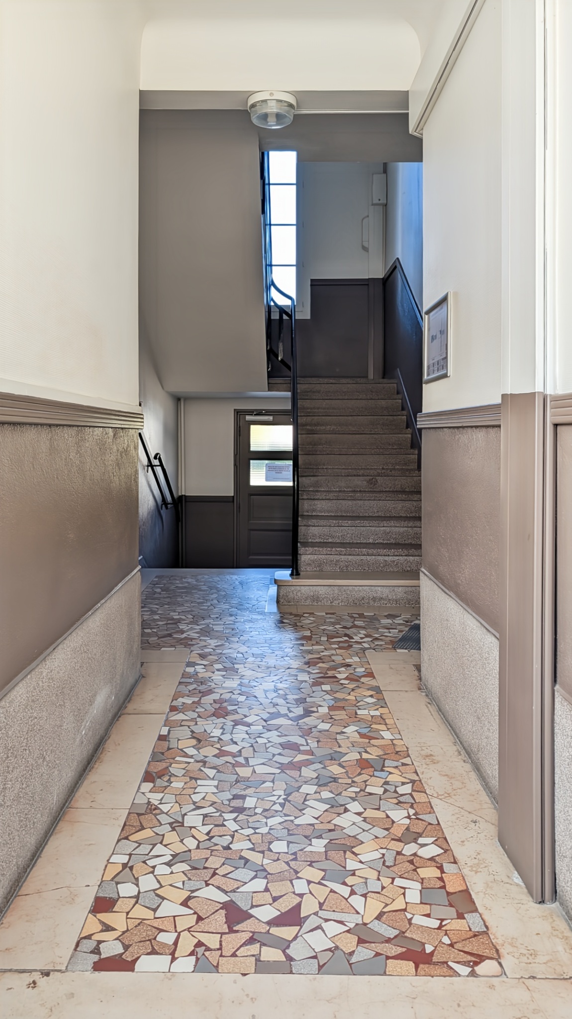 CARREZ : 56,34 m². Petite copropriété de 10 lots principaux.