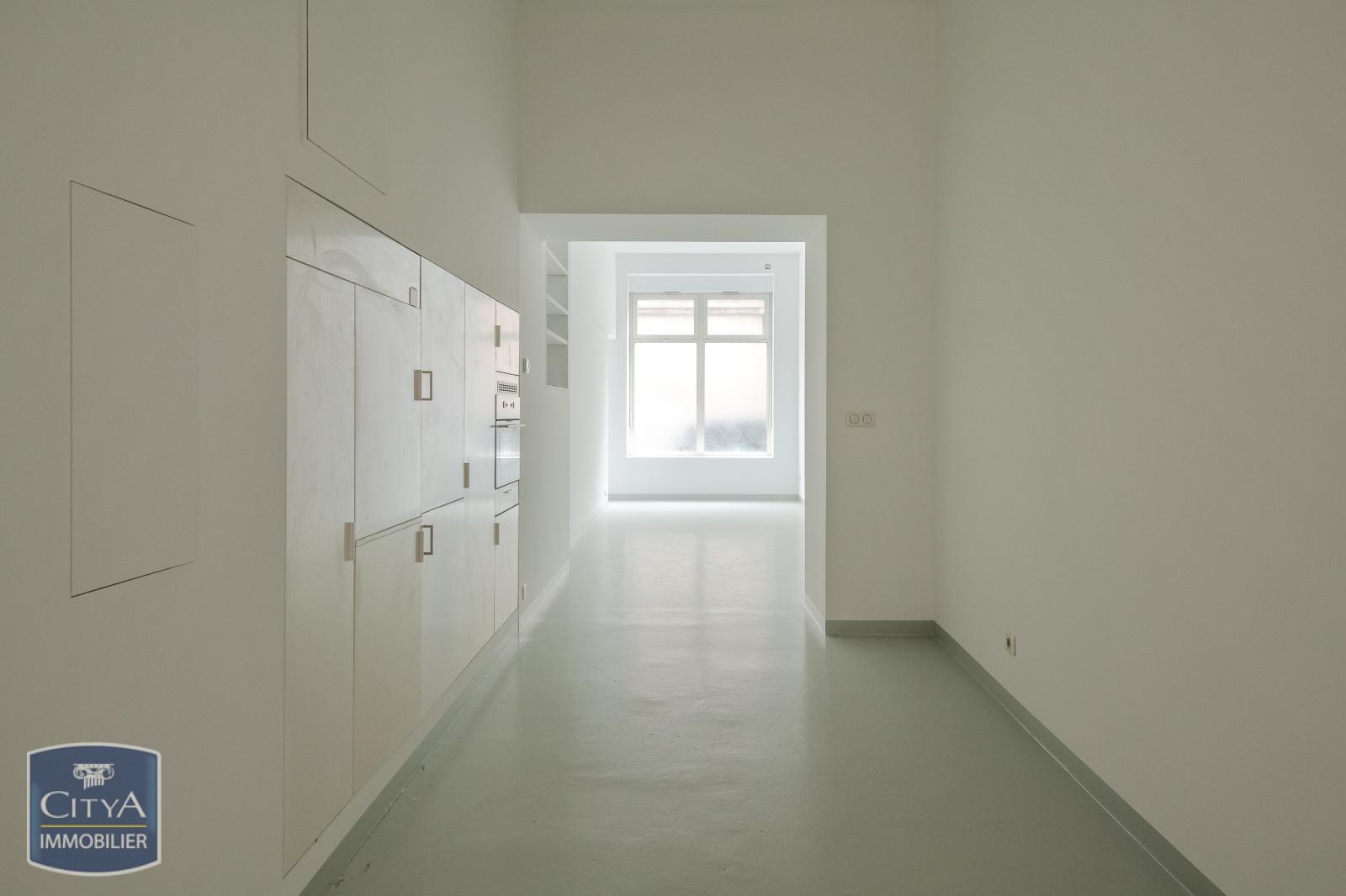 Appartement avec une cuisine partiellement aménagée et encastrée, un espace chambre et une salle d'eau partiellement aménagée. Volumes optimisés pour rangements ou coin bureau. Belle hauteur sous plafond de plus de 3 m 50.