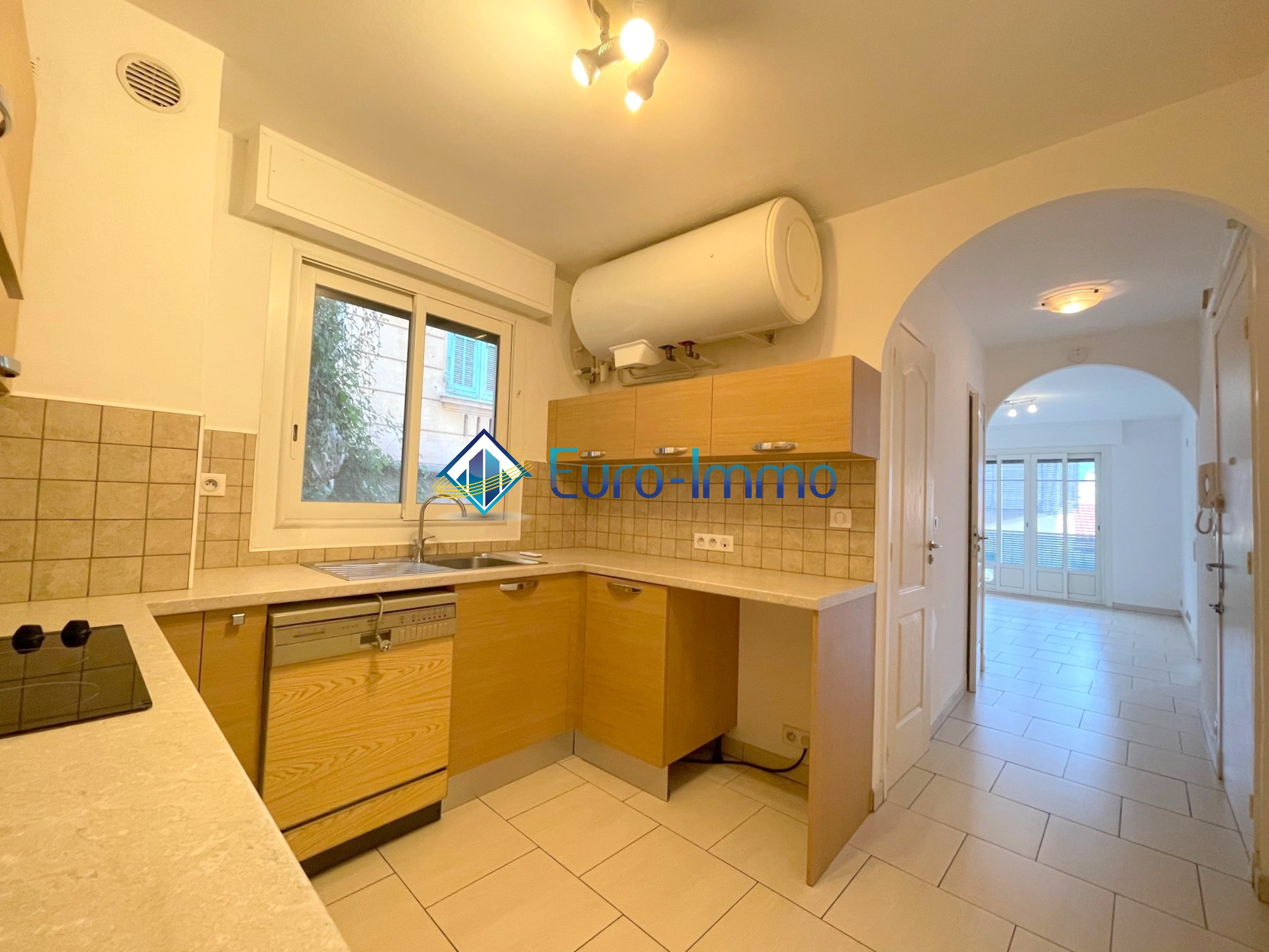 Cet appartement sis au 1er étage avec ascenseur se compose d'un couloir, d'un séjour, d'une cuisine séparée entièrement équipée, d'une chambre avec rangement, d'une salle d'eau, d'un W.C. séparé, et d'une terrasse 7m2.