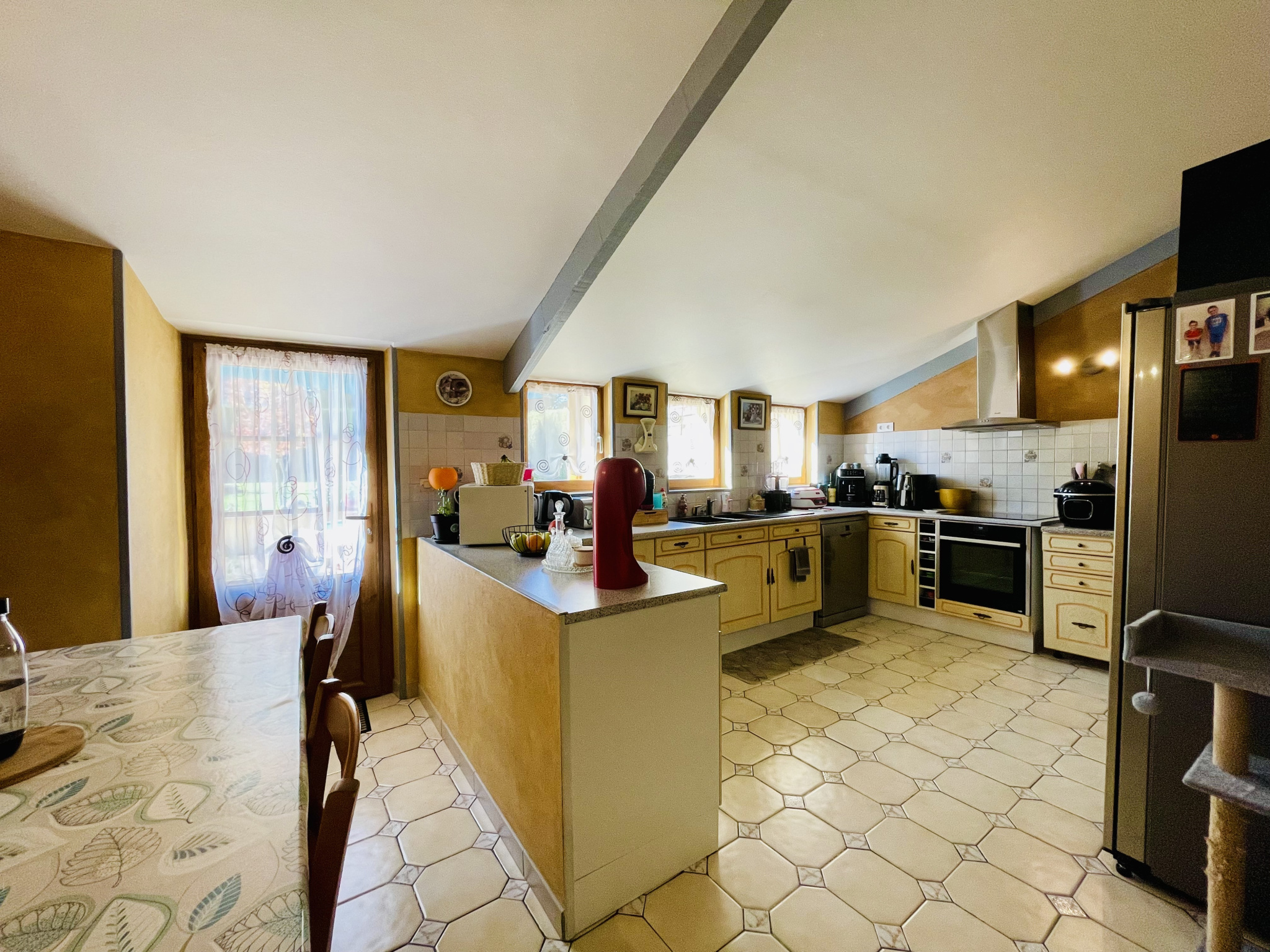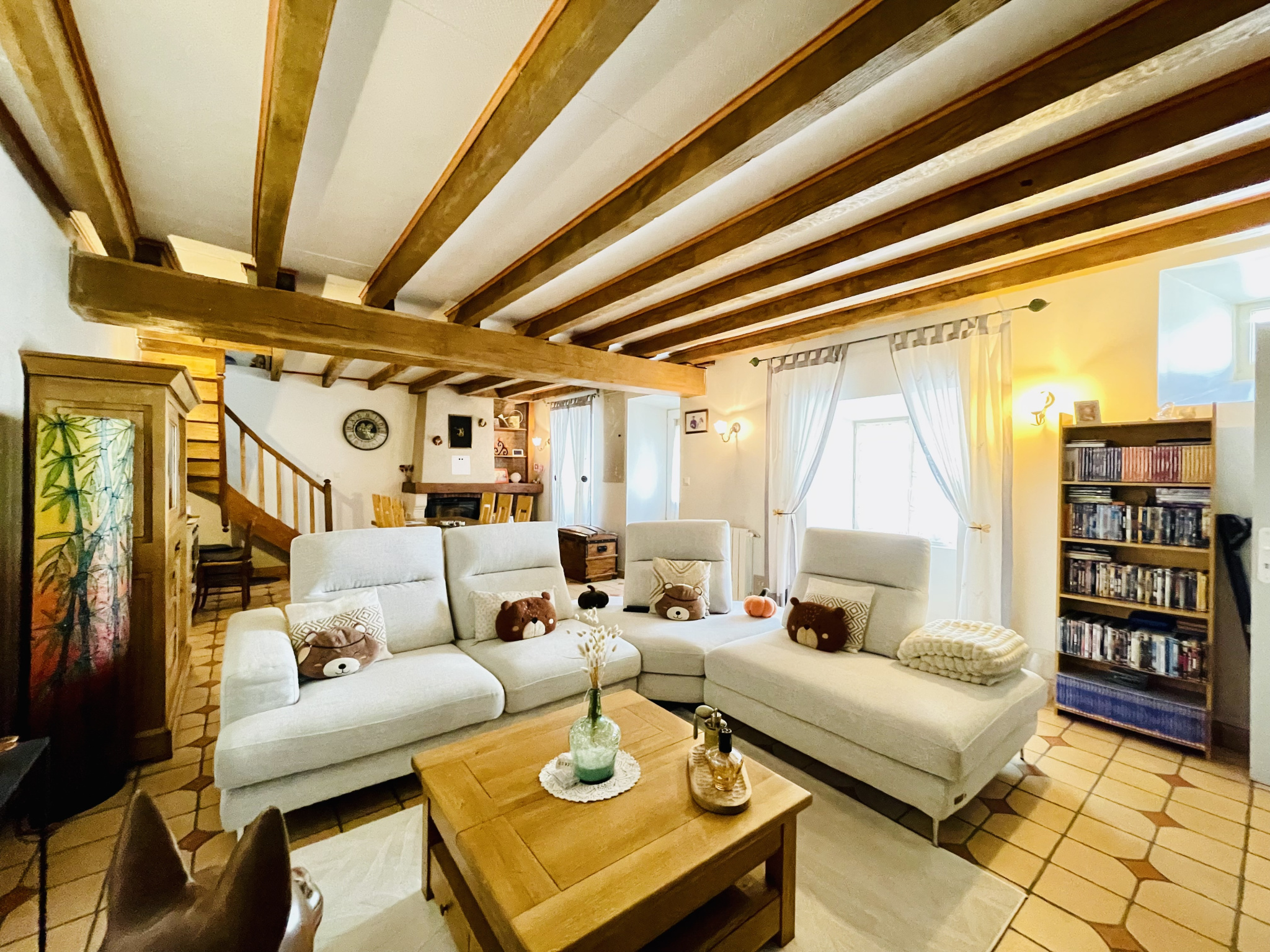 REF.34900 : 162 000 euros HAI, Ansac/Vienne (16), EXCLUSIVITÉ !, bourg avec commerces, jolie maison de village rénovée entièrement, mitoyenne, en pierres apparentes, à usage d'habitation, 135 m2 env. utilisables, composée au rez de chaussée : entrée, salon/séjour (insert granulés), cabinet de toilette, chaufferie/buanderie de 8,5 m2. A l'étage ou au rez de jardin : cuisine aménagée équipée, couloir, 3 chambres, salle d'eau/wc avec baignoire. Chauf. fuel, assainissement collectif. Jardin attenant clos avec terrasse et abri, le tout sur 475 m2.