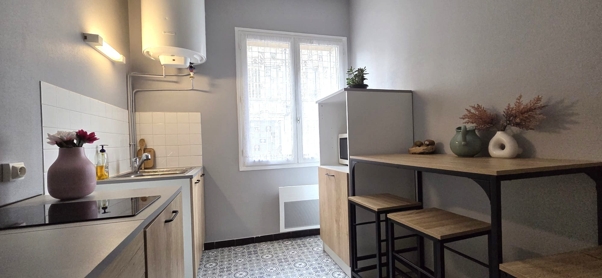 Secteur TIVOLI, proche des bus, du centre ville et des commerces de proximité, dans résidence bien tenue avec cour intérieure, appartement type 2 loué en très bon état, totalement rafraichi, il propose une cuisine aménagée, un séjour de 17m2 Sud/ouest, une chambre, une salle de bains et un wc indpt. Idéal investissement locatif. Actuellement loué 550 EUR/mois hors chges avec 50 EUR de charges. bail 3 ans. Taux de rentabilité brut 6% (4,51% net).